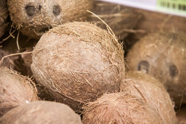 Через указанное время снимите бортик формы, выложите десерт на подходящее блюдо и обсыпьте торт оставшеся кокосовой стружкой.