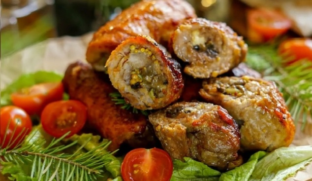 Для формирования крученика на каждый кусок мяса стоит выкладывать 1-2 ложки остывшей начинки, затем плотно заворачивать рулет, аккуратно подтягивая края. Чтобы рулетики не разворачивались, их можно скрепить зубочистками или завязать нитью.