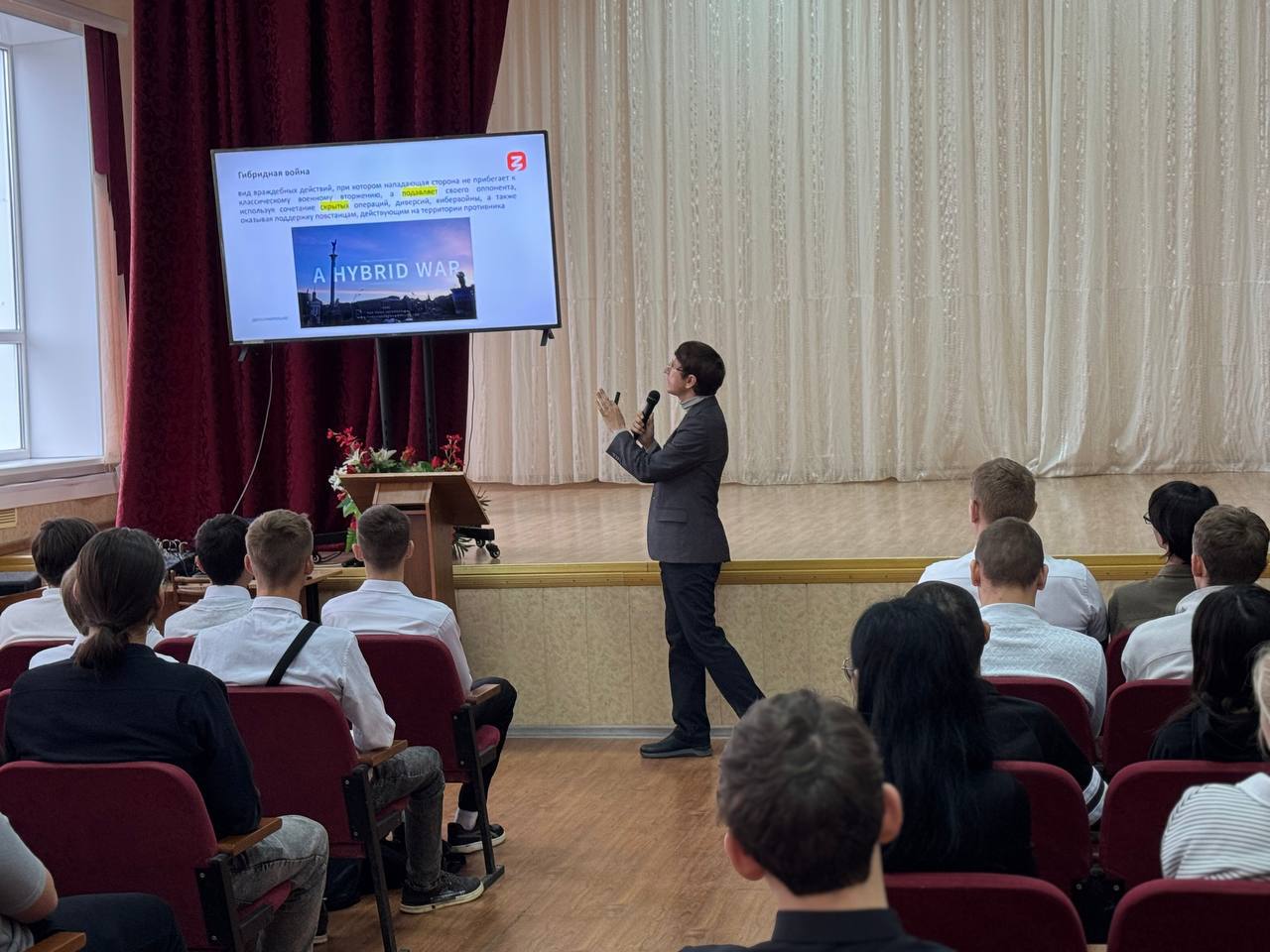 В своей лекции он рассказал о самых главных и интересных аспектах гибридной войны, которая сегодня ведется против нашей страны. Так, лектор пояснил, что это стратегия подрыва государства изнутри без объявления открытых военных действий. Её главное оружие – информационно-психологическое воздействие, направленное на раскол общества, подрыв доверия к институтам власти и уничтожение традиционных ценностей. Сегодня такие войны ведутся с использованием современных технологий, включая кибератаки и целенаправленное манипулирование общественным сознанием.