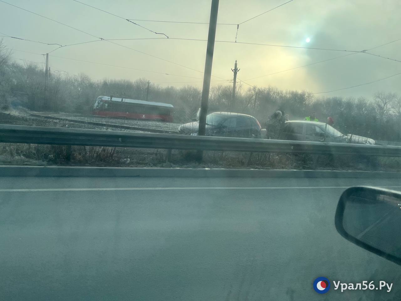 На улице Заводской Новотроицка два автомобиля в результате столкновения вылетели с дороги и оказались за отбойником, на территории разворотного трамвайного кольца.