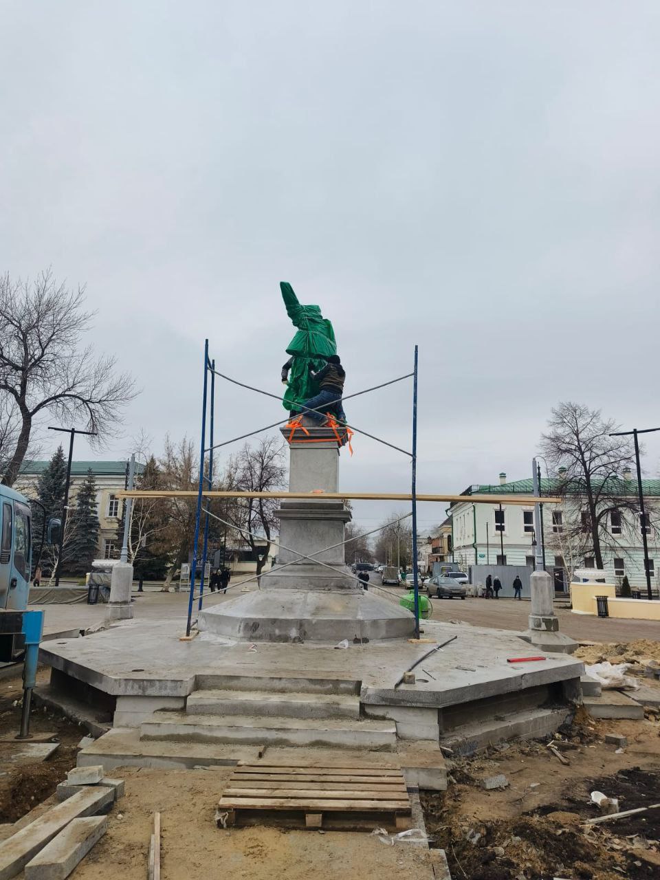 - Памятник будет обмотан целлофаном до окончания работ. Сейчас производится шлифовка пьедестала и стилобата из архитектурного бетона. Торжественное открытие запланировано на начало декабря, - рассказал начальник отдела капитального строительства и взаимодействия с территориальными органами администрации Оренбурга МБУ «УКС» Александр Сигаев.