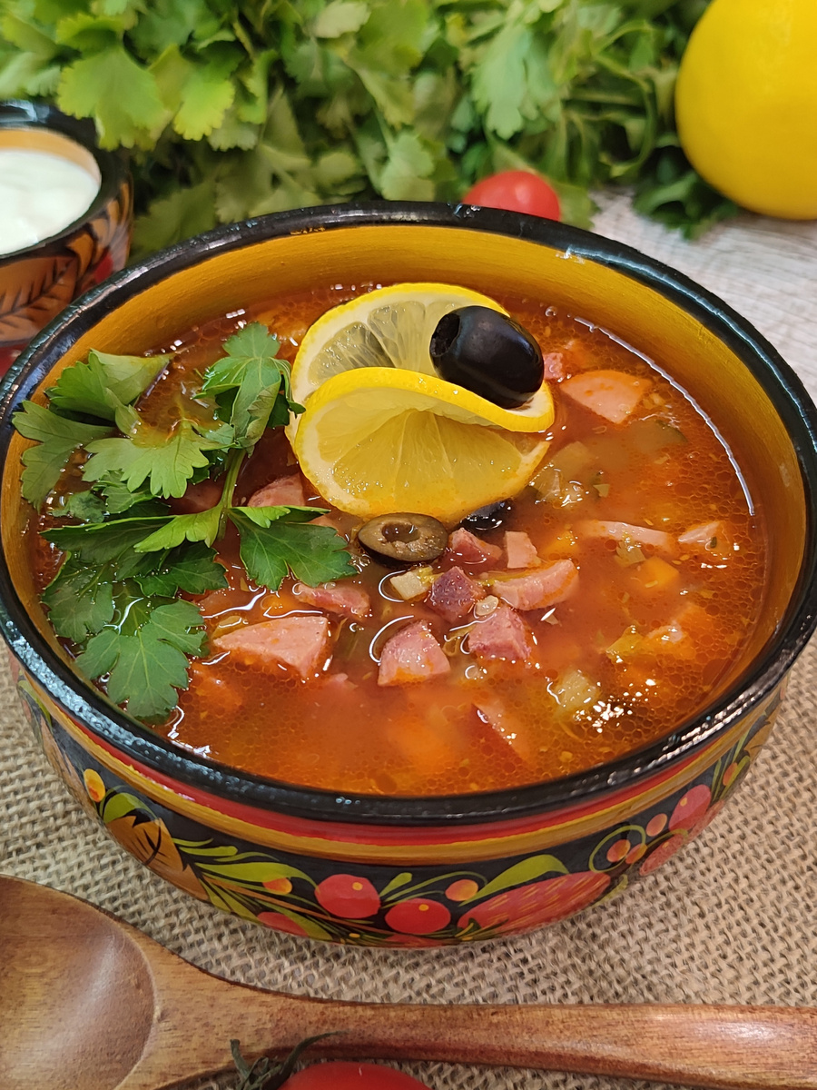 Солянка — это не просто суп, это кулинарное путешествие в мир вкусов, созданное с искренней любовью и из целой палитры ингредиентов. Представляя собой симфонию из копчёного, солёного и кислого, этот суп захватывает своей яркостью и насыщенностью. Он станет отличным выбором в те дни, когда хочется не только согреться, но и порадовать душу.