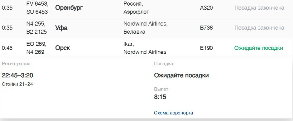 Судя по данным аэропорта, в настоящее время пассажиры Nordwind ждут посадки.