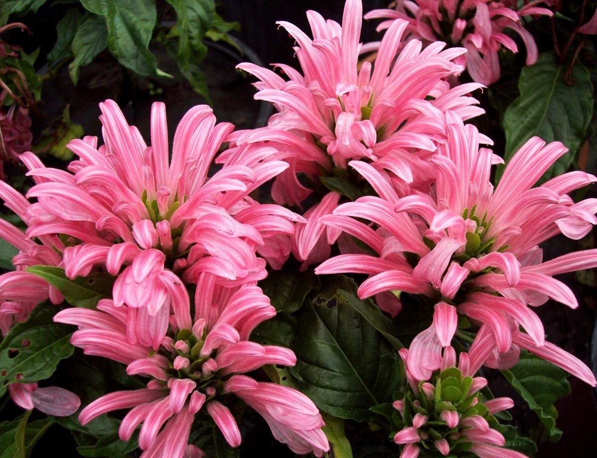- Якобиния Поля: это полукустарник с высотой до 70 см, побеги которого образуют шикарные соцветия. Листья темно-зеленые сверху и красноватые снизу.