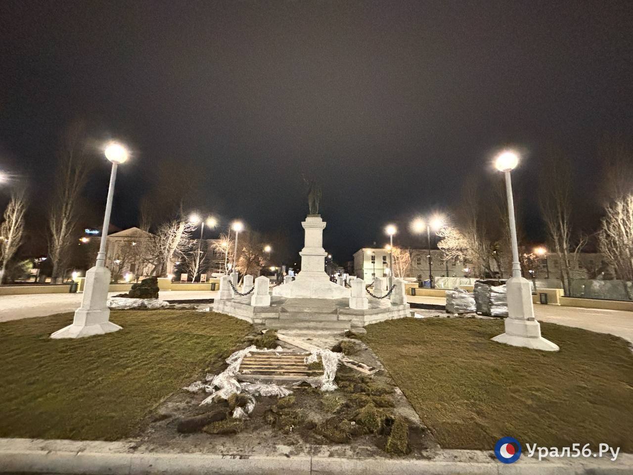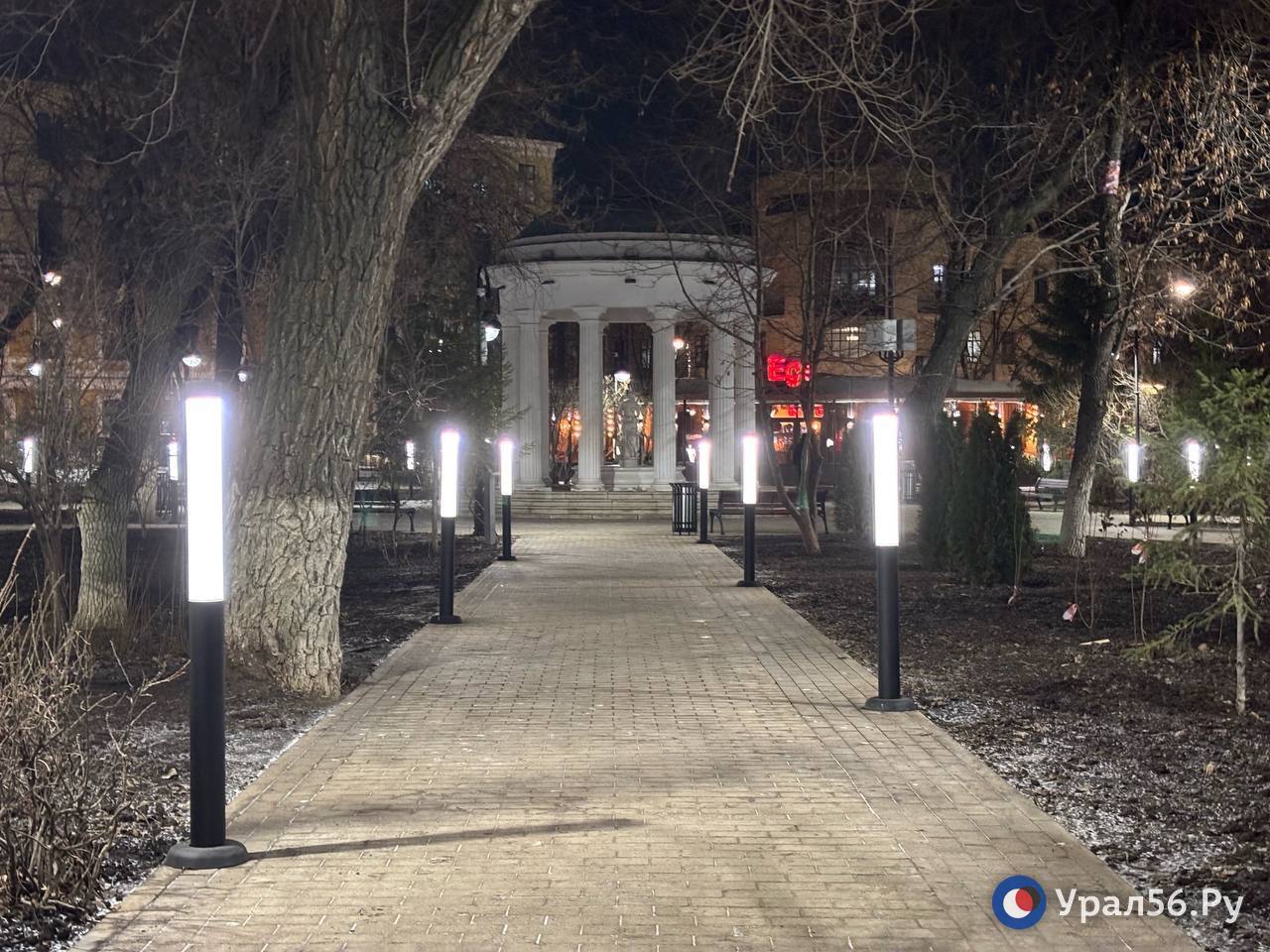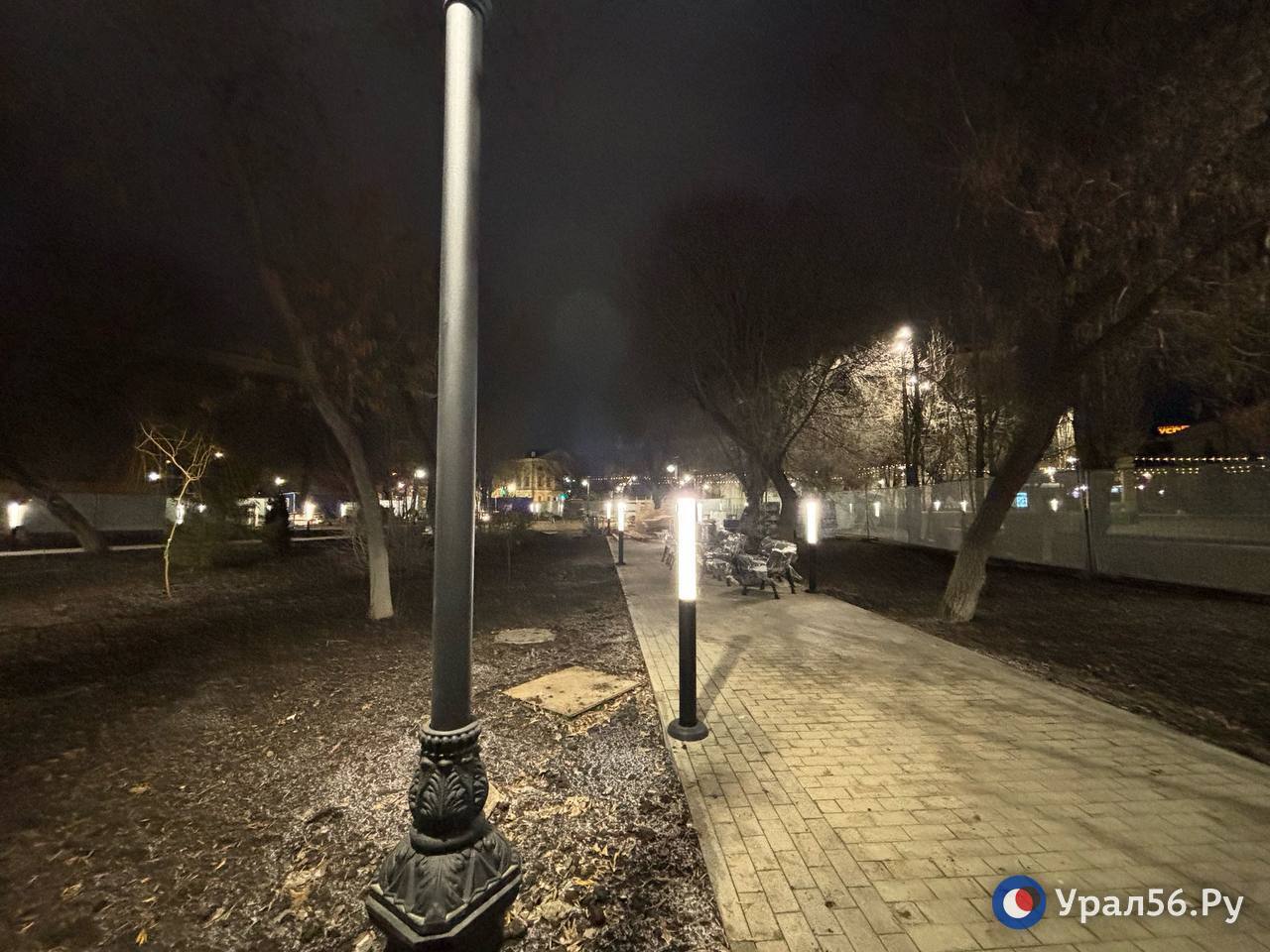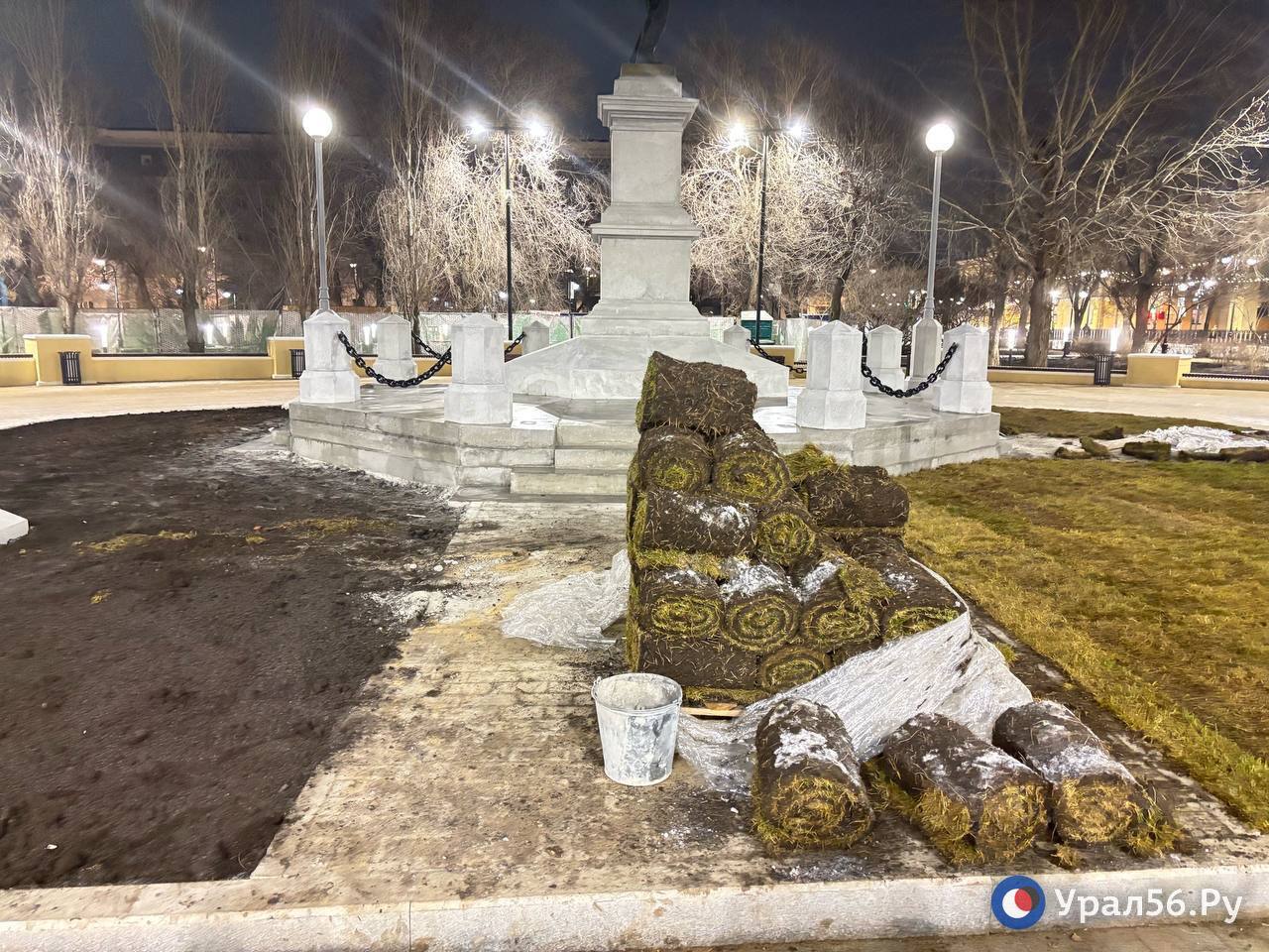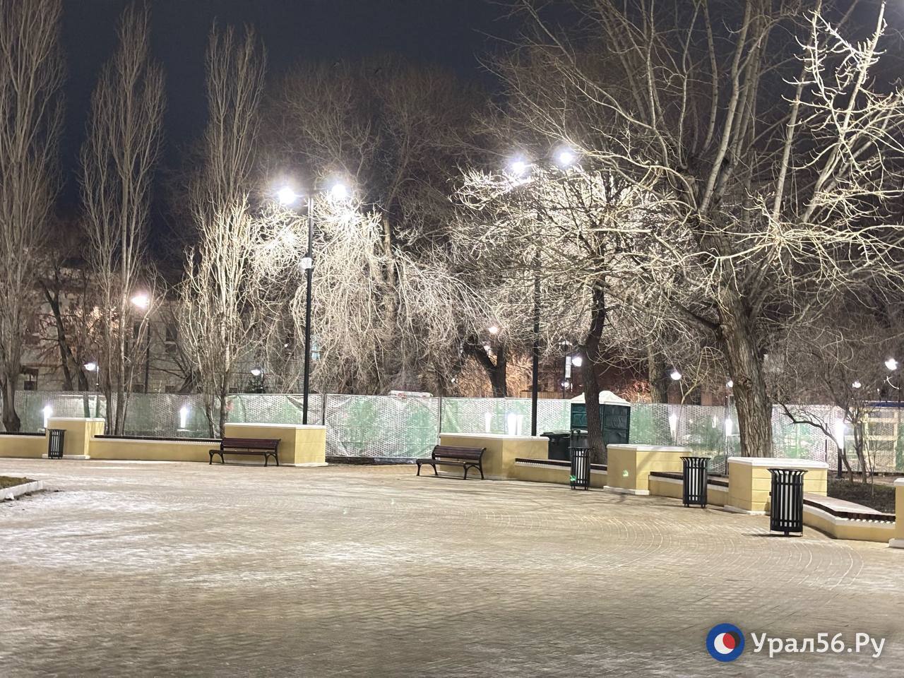 В сквере имени Ленина в Оренбурга работы на части территории завершены. Загороженной осталась правая часть парка, ранее там располагалась детская площадка.