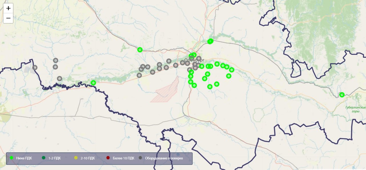 Большая группа стационарных постов уже несколько дней не передает данные на экокарту Оренбургской области