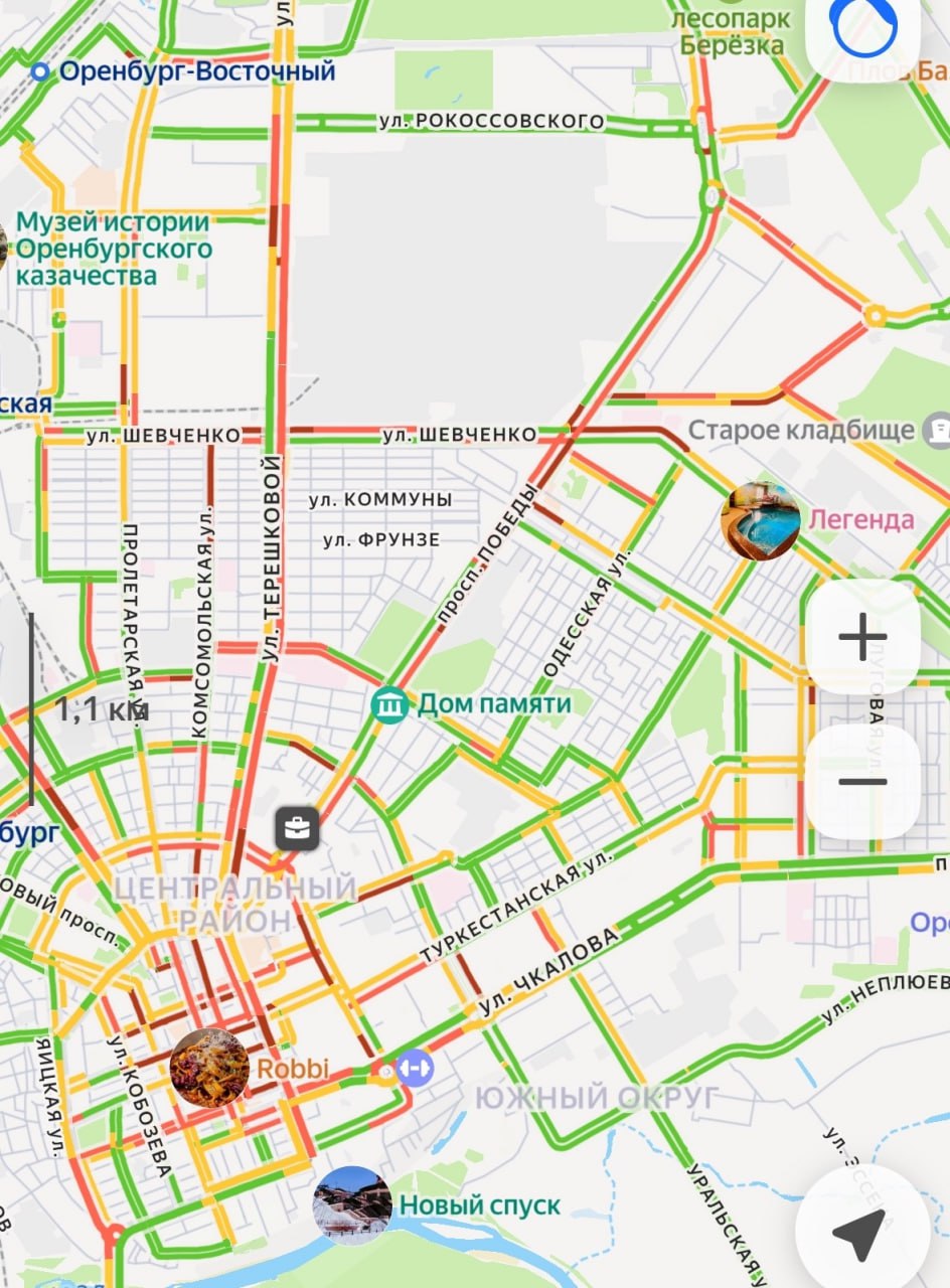 Оренбург стал в пробках, а его дороги на карте заиграли «яркими красками»