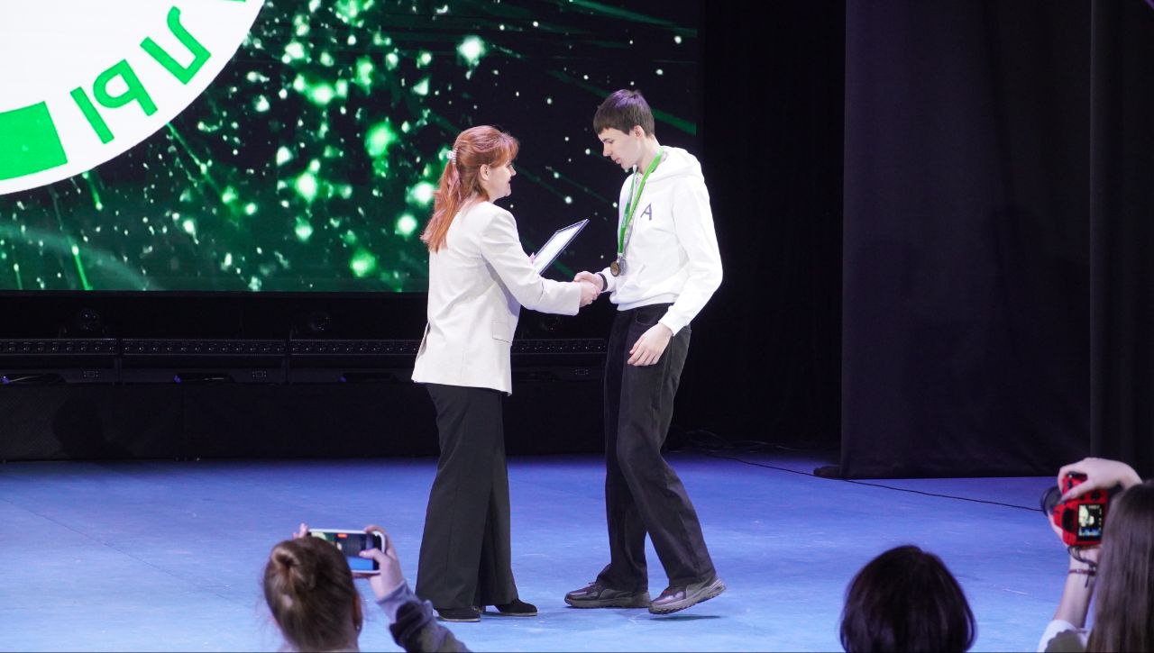 Восемь медальонов «За профессионализм» вручили воспитанникам Гимназии № 1, Лицея № 2, школ № 85, 37, 64 и 79. Также были отмечены эксперты-наставники: учителя Наталья Жемиря (Гимназия № 5), Елена Лихолат (Гимназия № 4), Виктория Вахитова (школа № 79), Елена Кумукова (школа № 85), Полина Морозова (школа № 37).