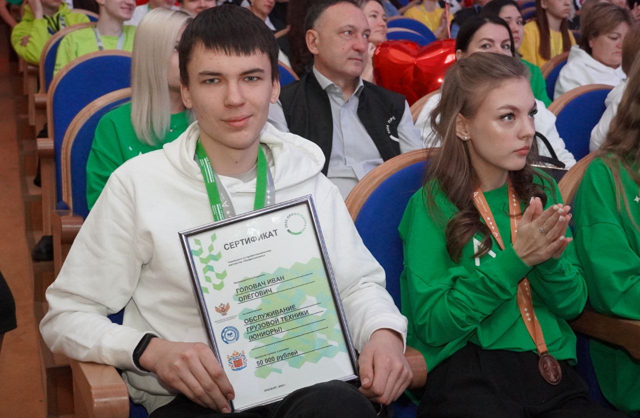 Золотую и серебряную медали завоевал воспитанник школы № 3 Иван Головач. Высшей награды он удостоен за победу в компетенции «Обслуживание грузовой техники» чемпионата «Профессионалы». В «Абилимпиксе» школьник стал вторым в компетенции «Ремонт и обслуживание автомобиля».