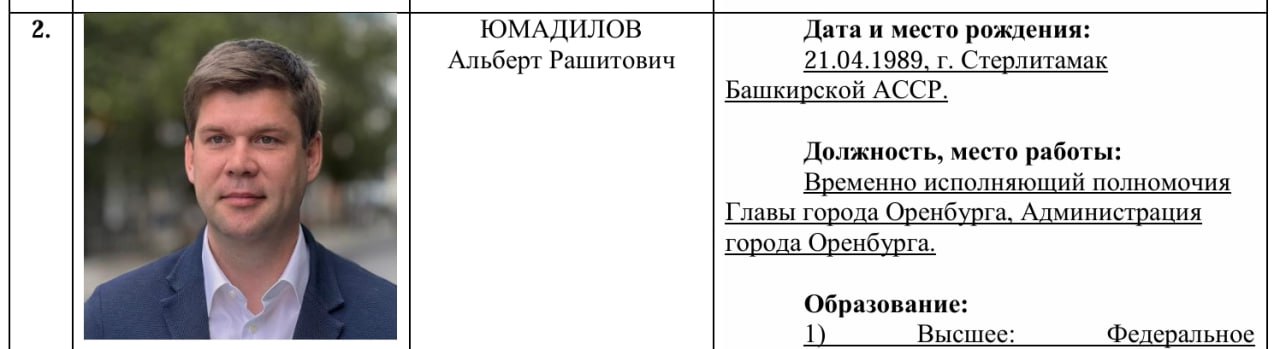 Альберт Юмадилов – 36 лет, самый молодой врио главы за всю историю Оренбурга. Ранее работал первым замом префекта Юго-Восточного административного округа Москвы. Родился в Башкирии, в Стерлитамаке. Образование — социологический факультет МГУ, имеет несколько грамот и благодарностей, в том числе президента РФ.
