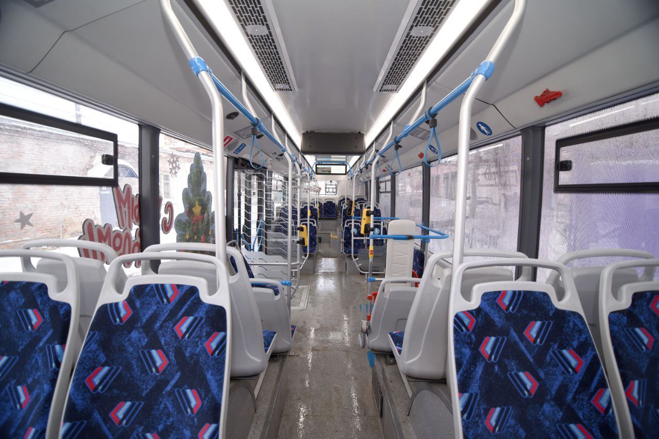 В салоне есть кондиционеры, светодиодные светильники, электронный контроль оплаты проезда, а также видеонаблюдение, информационное табло и розетки с USB-портами.