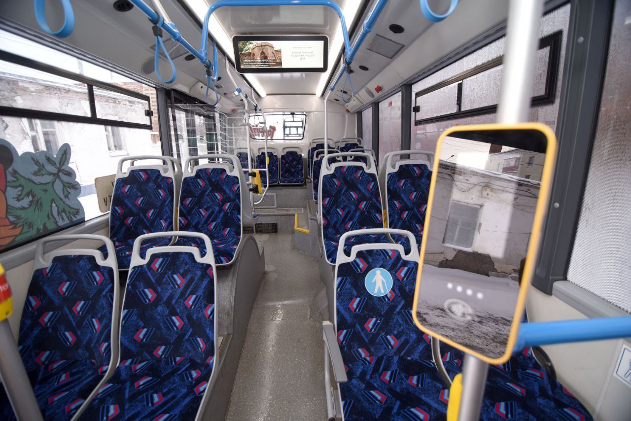В троллейбусе есть электронный маршрутоуказатель, антивандальные сиденья и пневматическое кресло водителя.