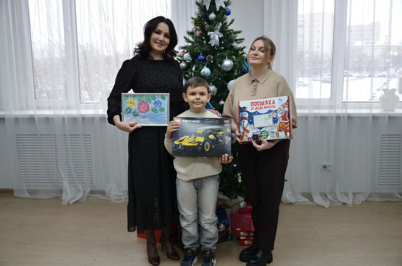 Завершился визит чудесно: гость снял с Ёлки желаний волшебный шарик и получил желанный подарок - конструктор и набор сладостей.