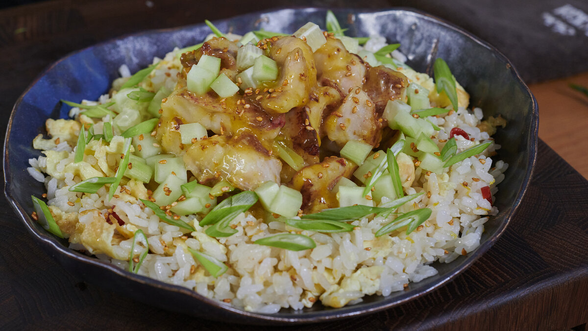 Когда все компоненты готовы, подайте рыбу вместе с рисом в глубокую тарелку. Украсьте мелко нарезанным свежим огурцом, зеленым луком и посыпьте кунжутом. Таким образом, вы создадите не только вкусное, но и потрясающе красивое блюдо, которое станет настоящей звездой вечеринки. Приятного аппетита!