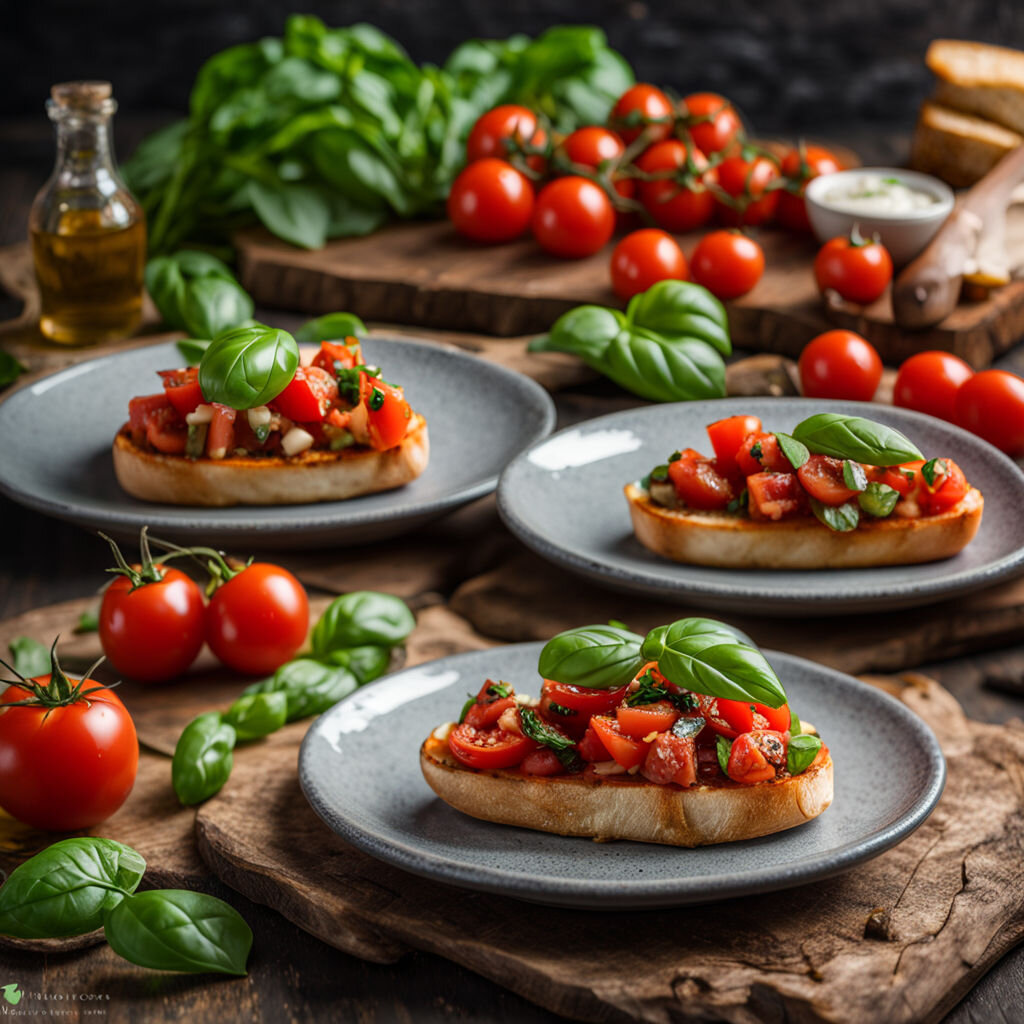 - Брускетта с томатами и базиликом: Это классическое сочетание свежих томатов и ароматного базилика на поджаренных ломтиках багета подарит невероятное удовольствие.