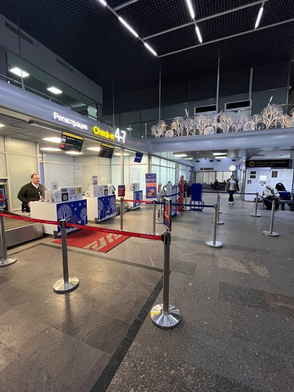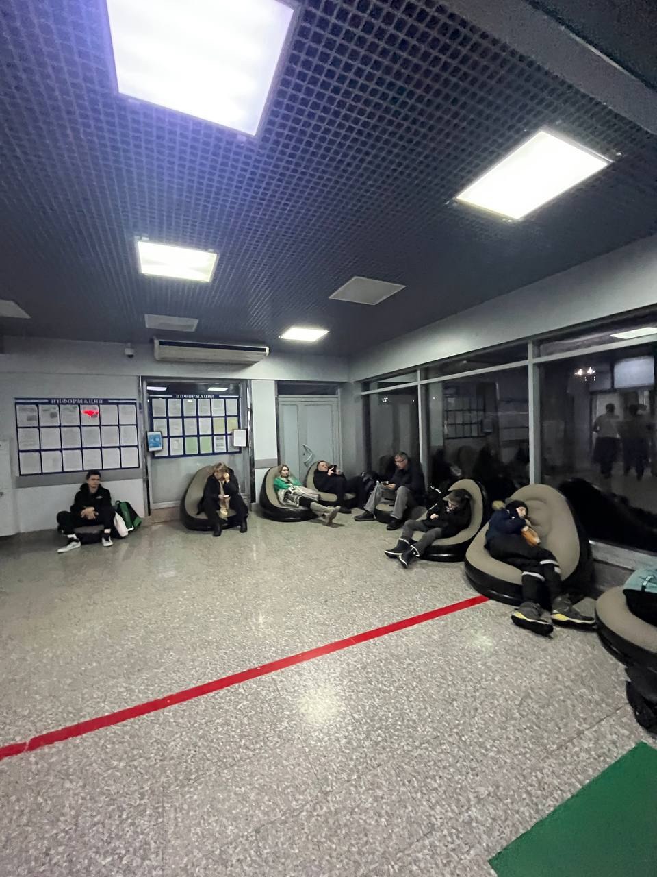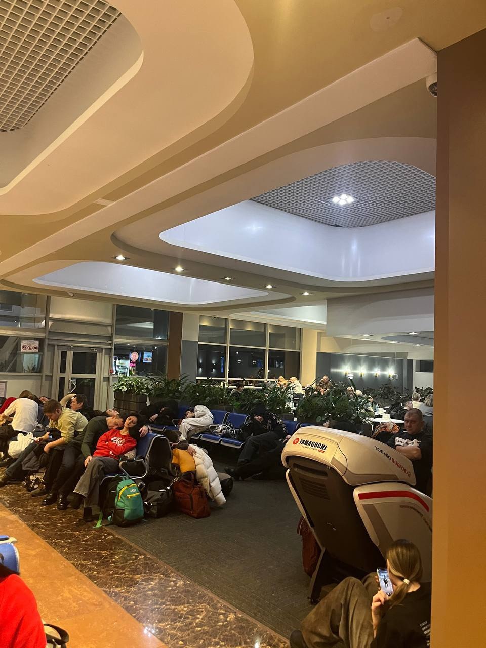 Обстановка в аэропорту Оренбурга, где задерживаются несколько авиарейсов. Большого скопления людей нет.