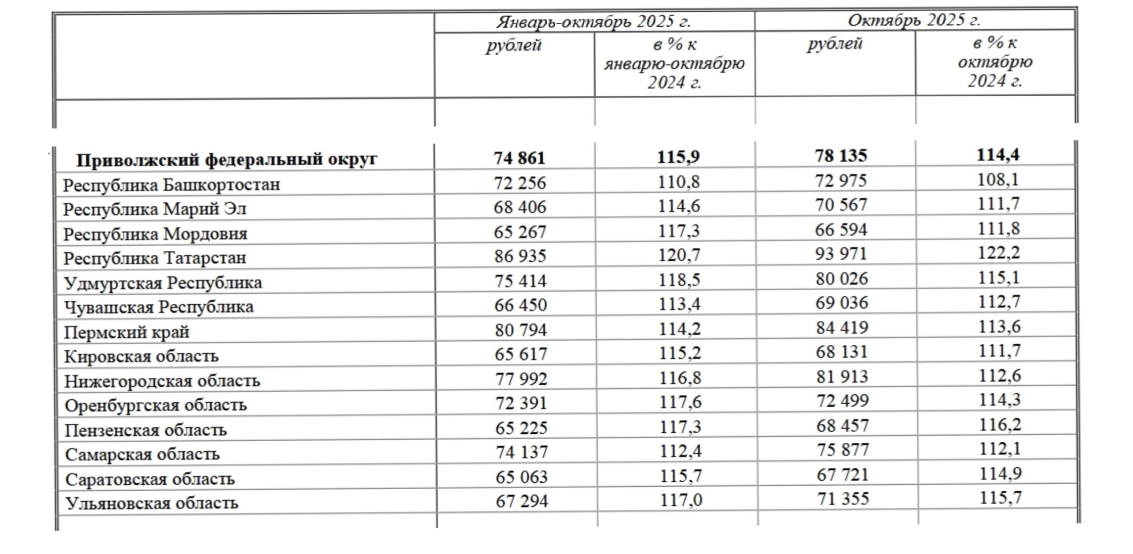 Среди регионов ПФО лидерами по уровню заработных плат остаются: