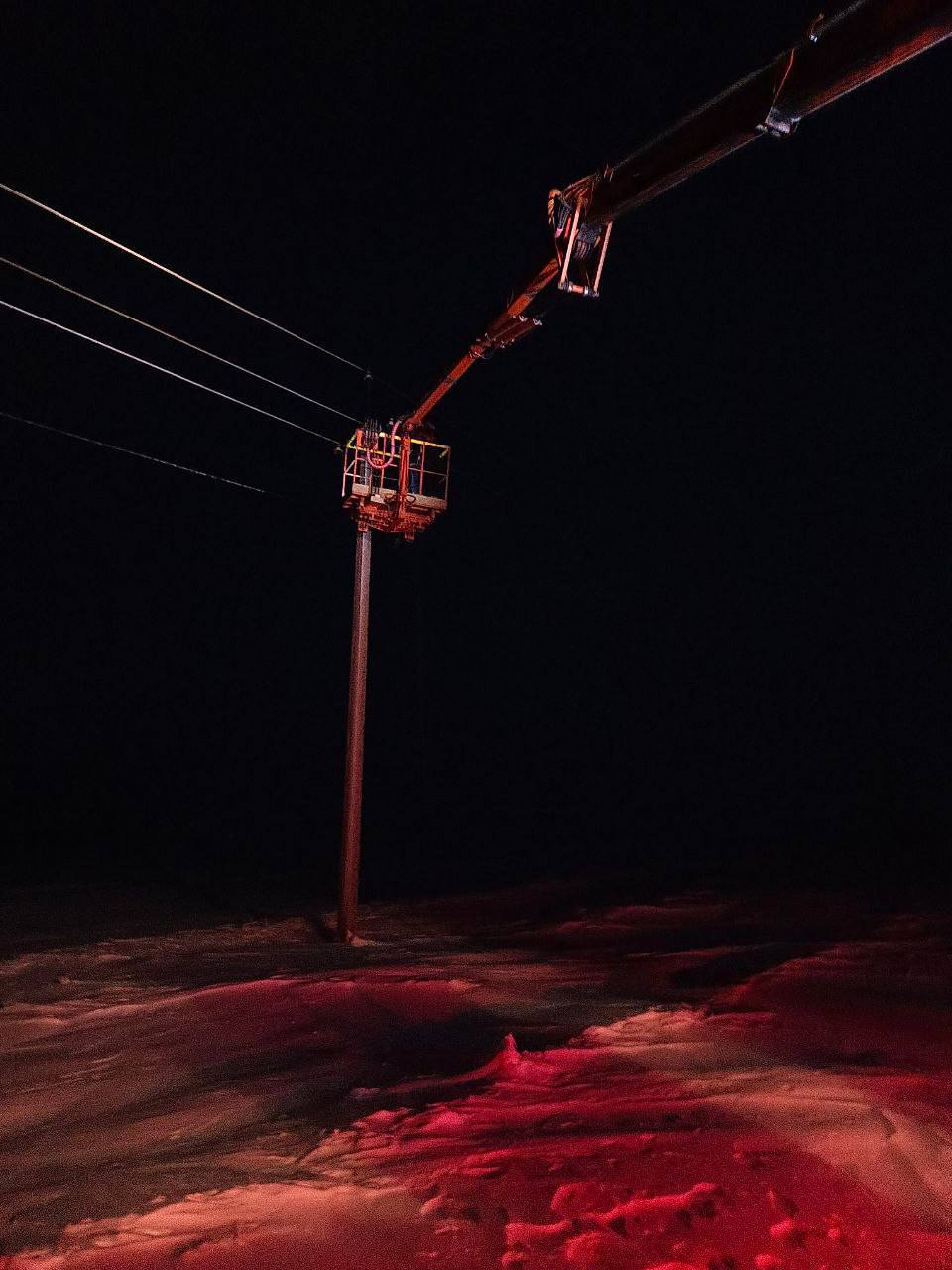 Восстановление электроснабжения осложняется сильным ветром с порывами до 27 м/с.