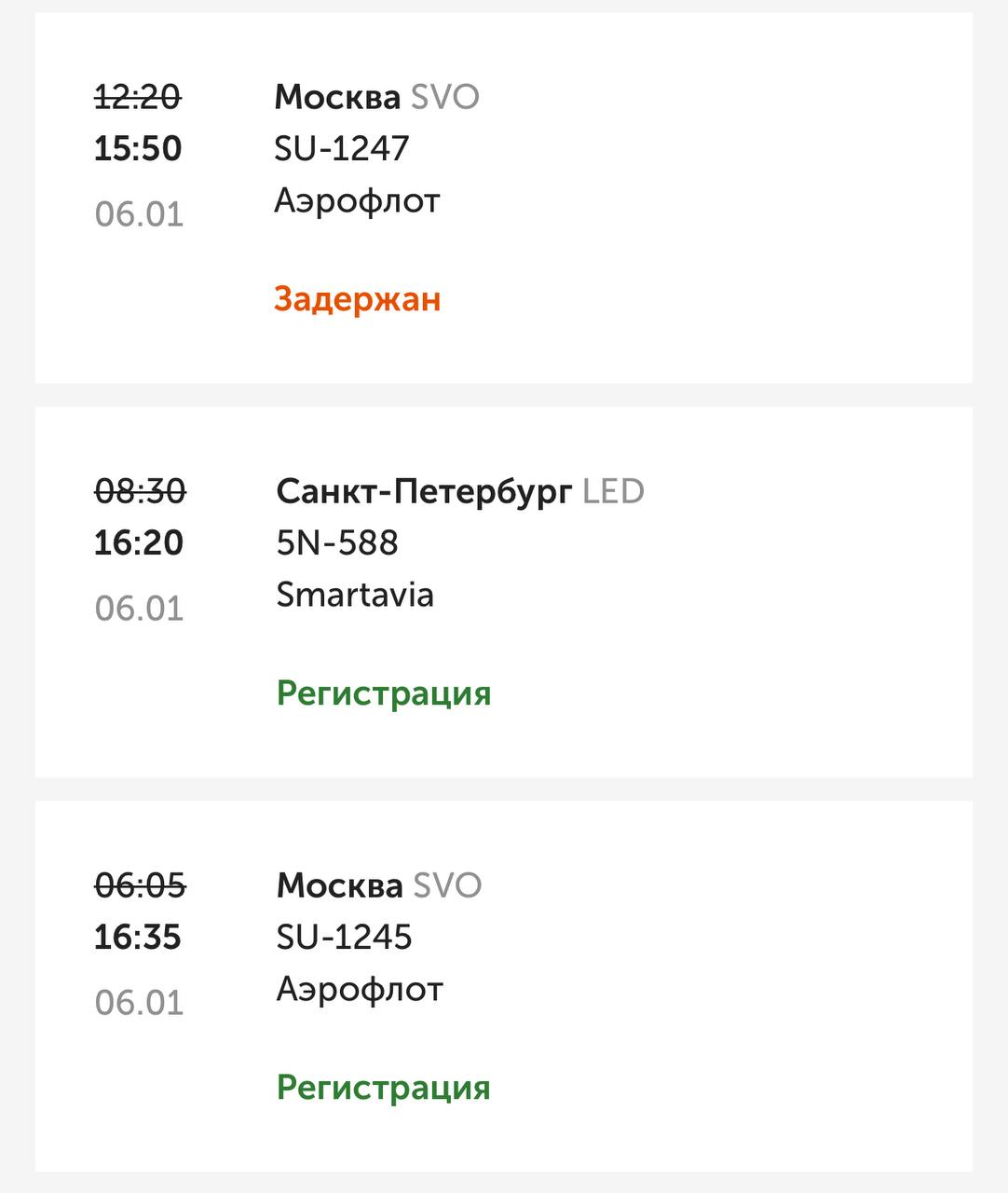 рейс Оренбург — Санкт-Петербург, назначенный на 08:30, задержан до 16:20;