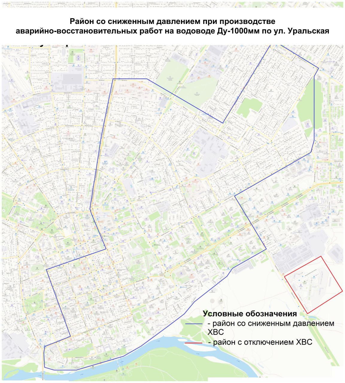 Аварийные работы на водоводе диаметром 1000 мм запланированы с 22:00 13 января до 06:00 14 января.