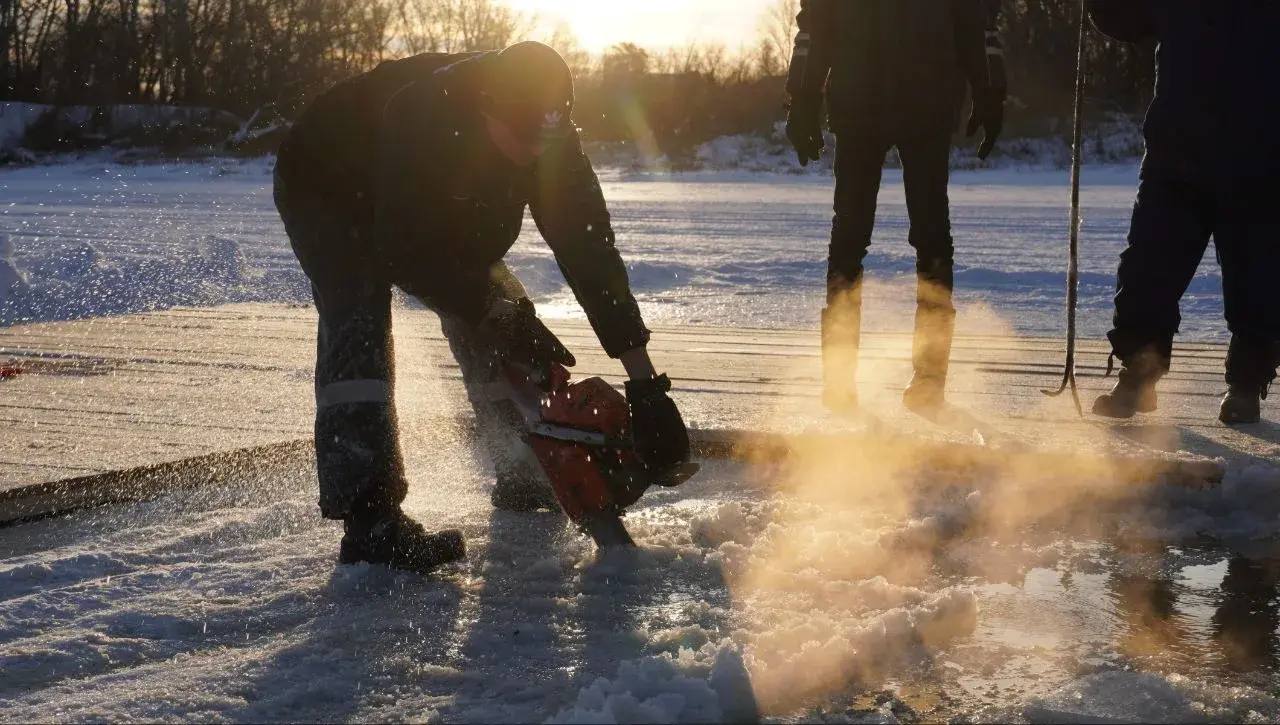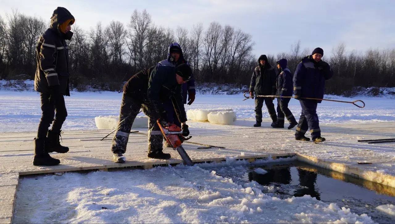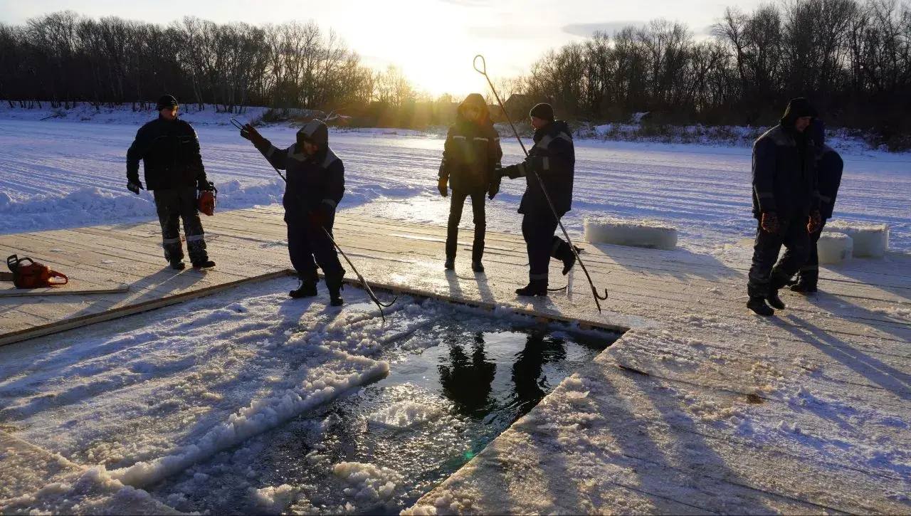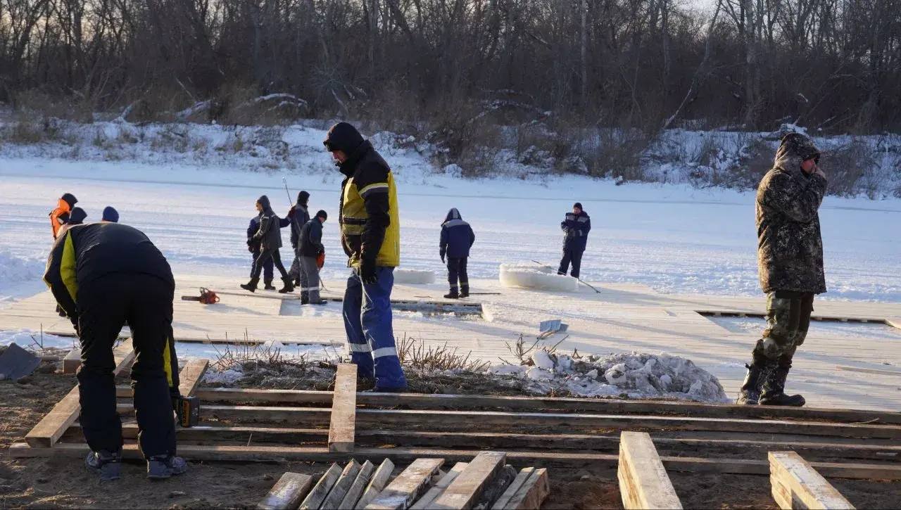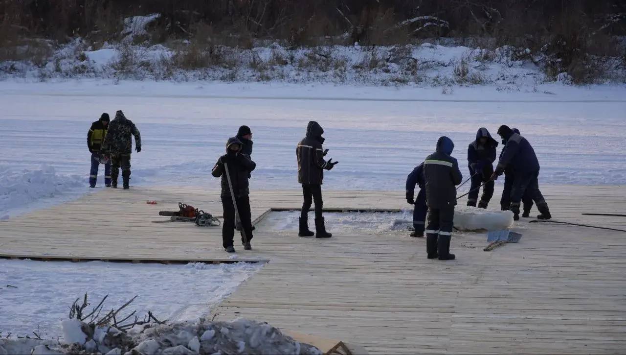 В Оренбурге у моста через Урал готовят крещенскую купель
