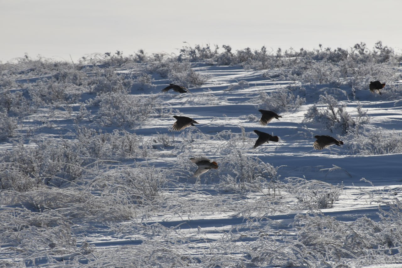 На незамерзающих участках водоемов иногда остаются лебеди и утки. Постоянными зимующими птицами в Оренбуржье считаются куропатки, тетерева, глухари, совы и дятлы.