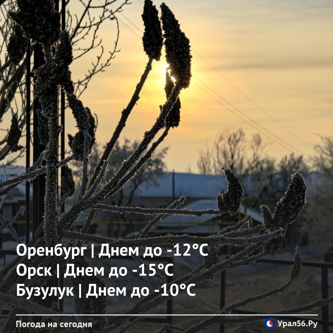 Днем безоблачно, без осадков.Температура воздуха в Оренбурге от -11 до -16; в Орске от -18 до -22; в Бузулуке от -10 до -14.Ветер восточный 10 м/с. Давление: 770 мм рт. ст.и