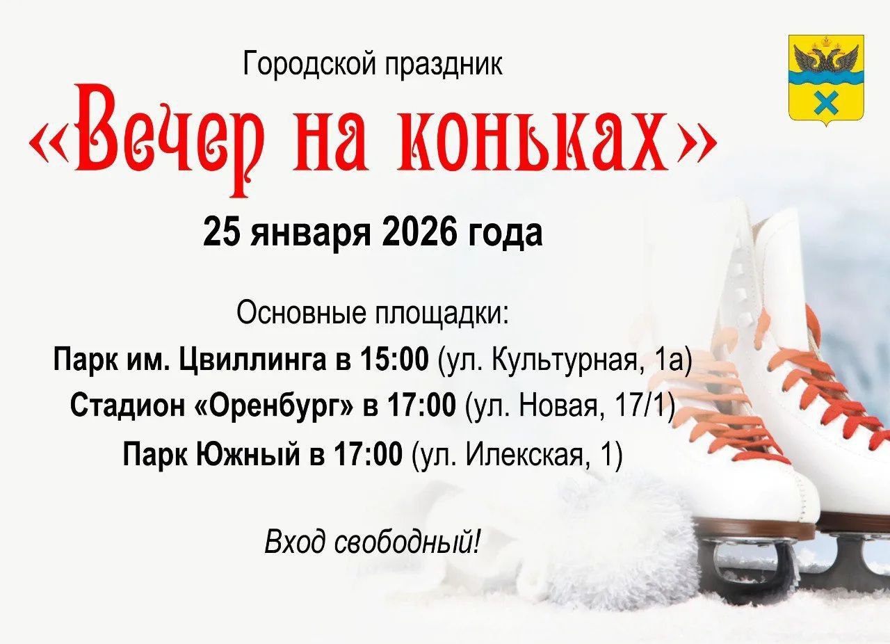 Оренбург готовится к одному из самых ярких зимних событий – традиционному «Вечеру на коньках», который пройдёт 25 января и будет приурочен к Татьяниному дню. Это прекрасная возможность провести время на свежем воздухе, насладиться зимними развлечениями и зарядиться позитивом в кругу близких.