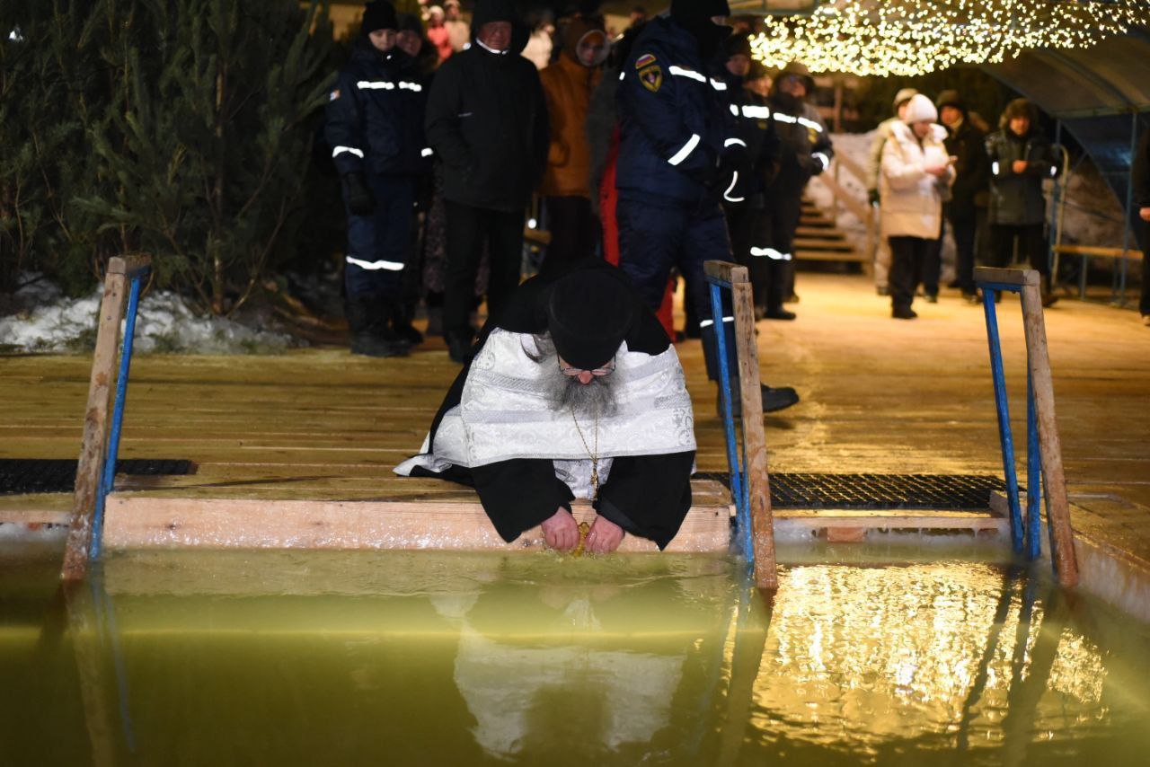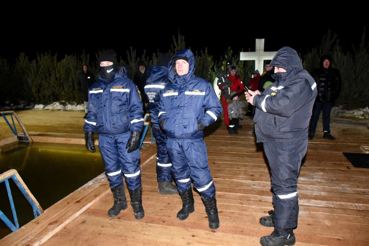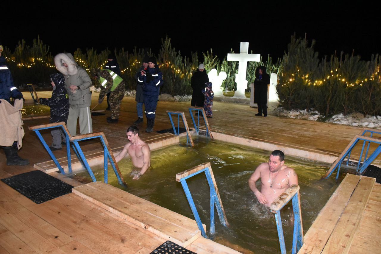 Подготовлены две иордани, удобный подход к воде, ступени и перила для безопасного спуска, установлены теплые палатки для переодевания.