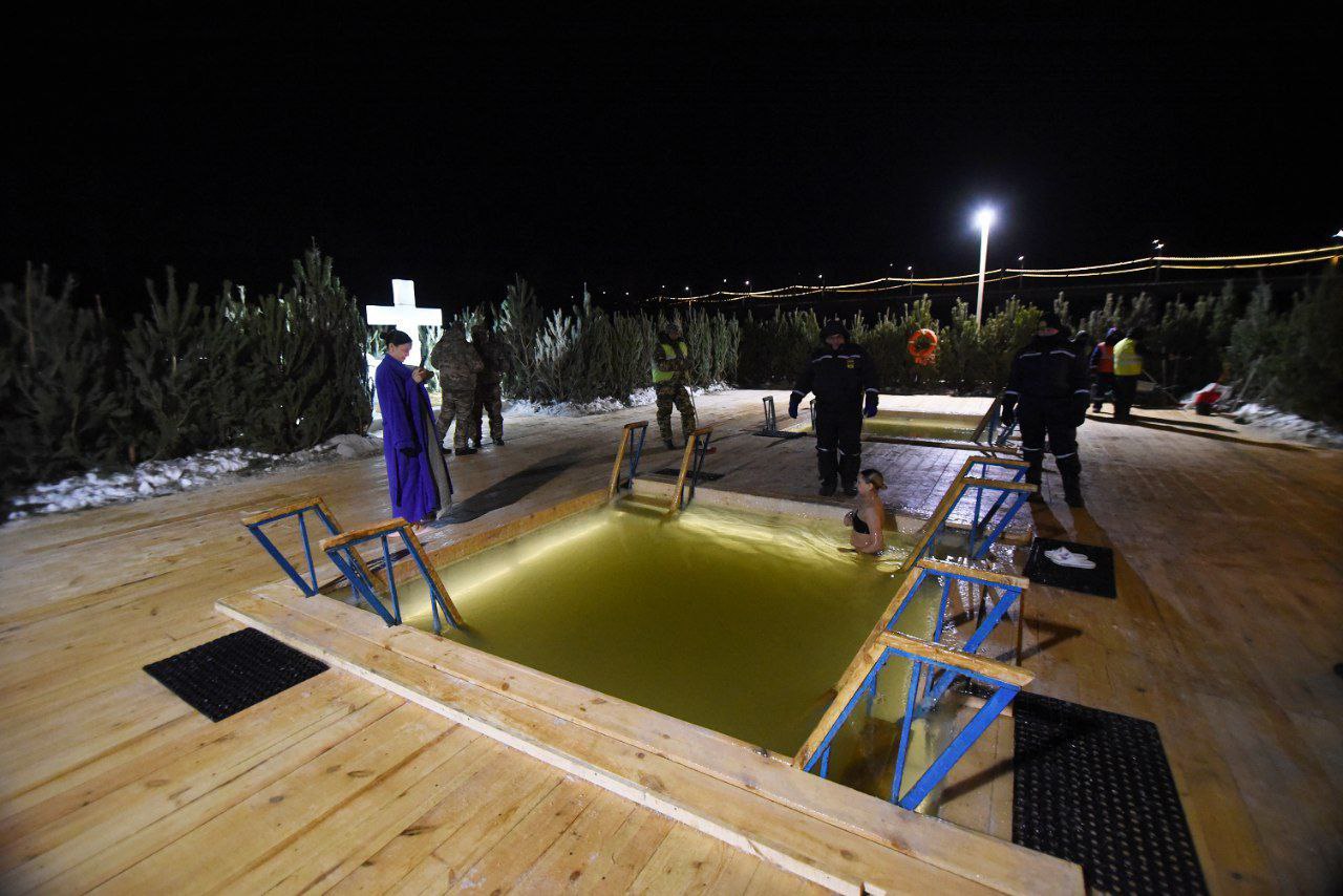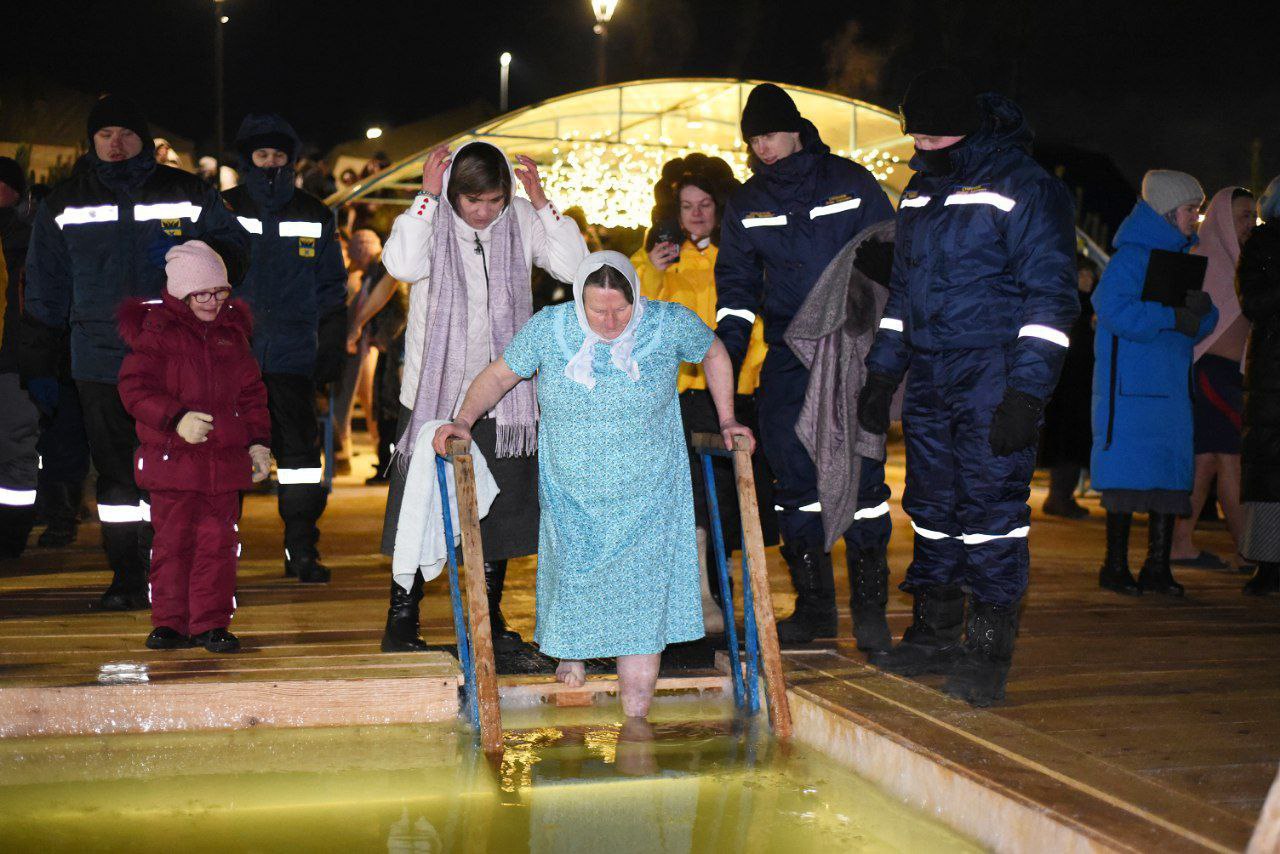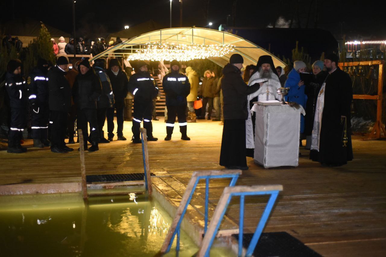 Подготовлены две иордани, удобный подход к воде, ступени и перила для безопасного спуска, установлены теплые палатки для переодевания.