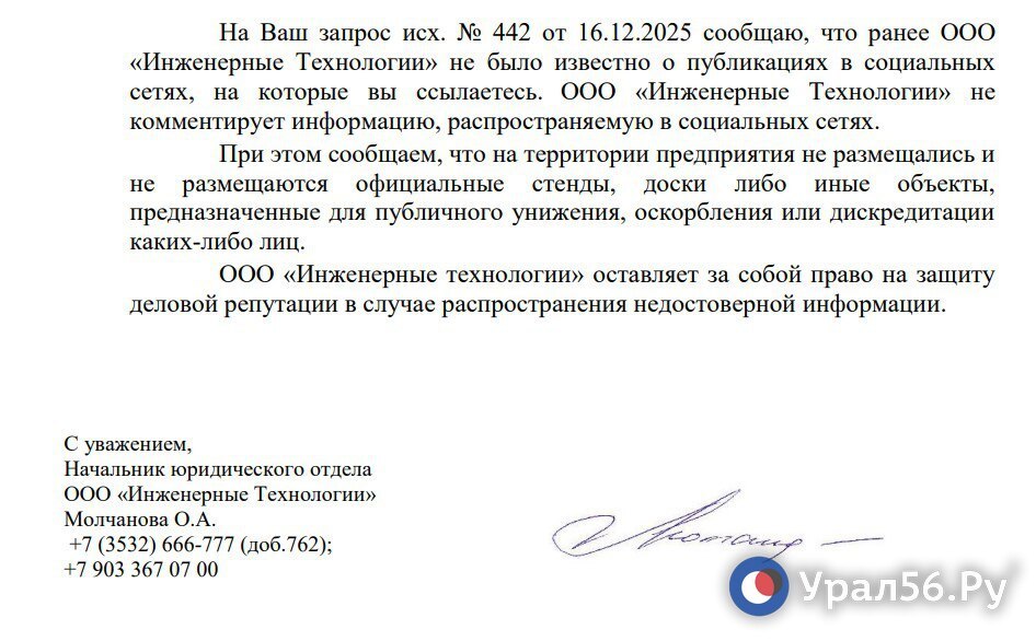 Ситуацию Урал56.Ру недавно прокомментировали на самом заводе. Там сообщили, что стенды, доски либо иные объекты, предназначенные для публичного унижения, на территории завода не размещались. Более того, о размещенных фотографиях, на которые якобы попала доска, даже не знали, а информацию из соцсетей не комментируют.