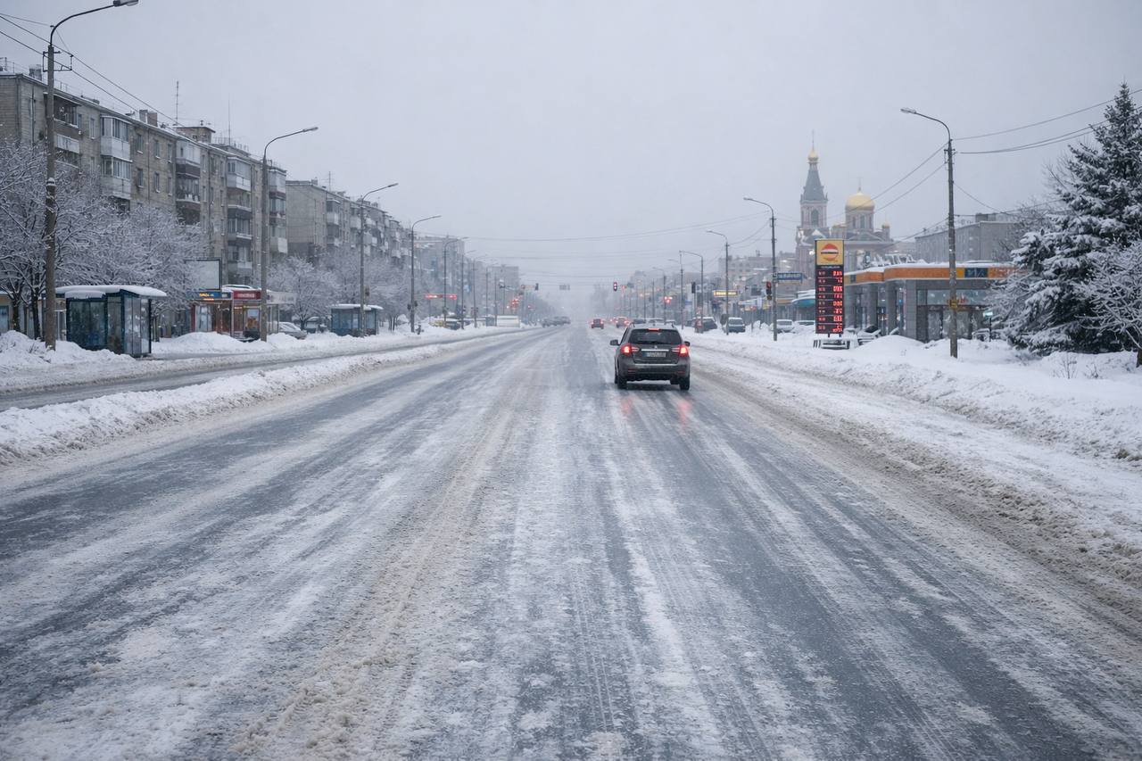 Это не просто рыхлый снег, а плотный, укатанный колёсами слой. Он появляется, когда влажный снег на асфальте уплотняется под давлением машин. Такой накат ухудшает управляемость, повышает риск заноса и увеличивает тормозной путь. Объяснил ЦГМС.
