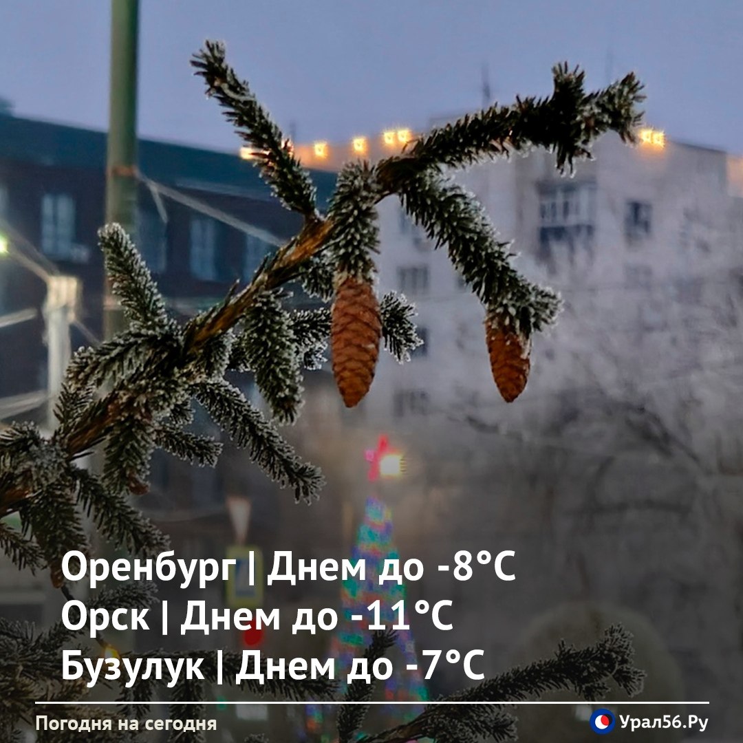 Днем пасмурно, небольшой снег.Температура воздуха в Оренбурге от -10 до -13; в Орске от -12 до -15; в Бузулуке от -8 до -11.Ветер юго-западный 5 м/с. Давление: 759 мм рт. ст.