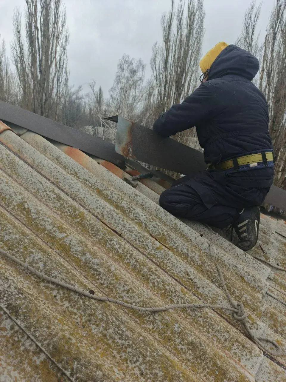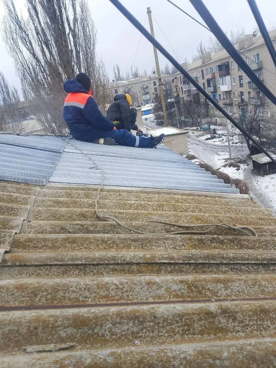 Участок кровли восстановили с помощью стройматериалов, полученных от представителей Оренбургской области. На месте рабочие смонтировали шиферные листы под оцинкованный конек.
