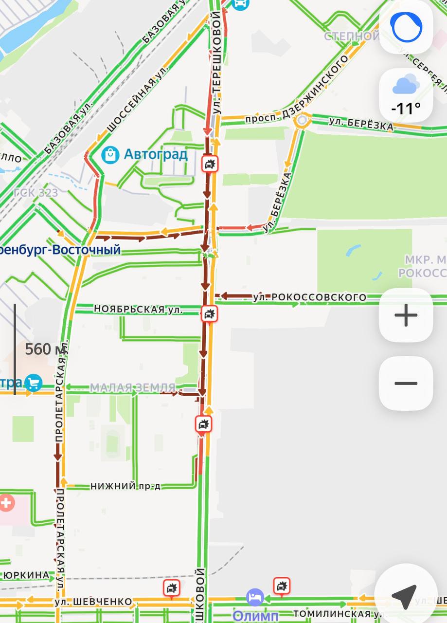 Пробка на улице Терешковой в Оренбурге становится глобальнее