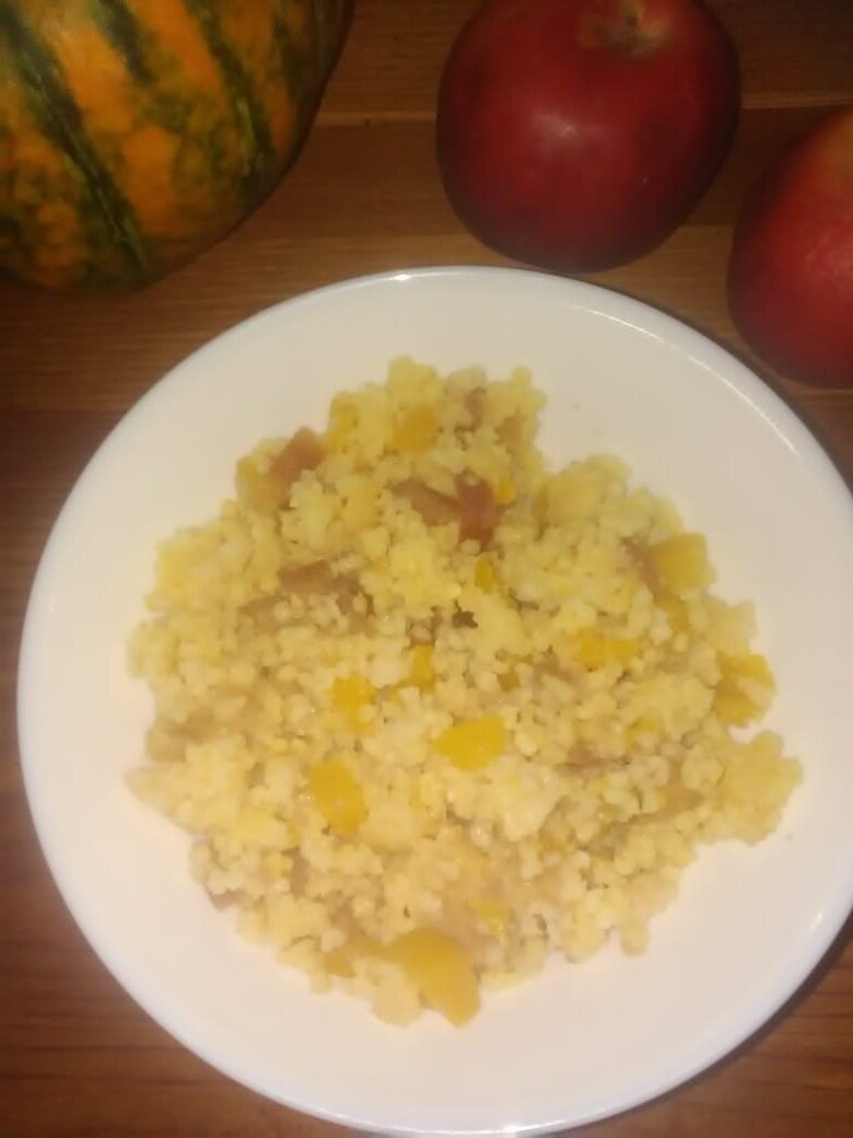 Прежде всего, следует промыть пшено и залить его двумя стаканами кипятка на пять минут. Тем временем, необходимым образом подготовьте тыкву и яблоки: очистите и нарежьте их на небольшие кусочки. В миску с пшеном добавьте сахар и щепотку соли, затем переложите массу в жаропрочную форму. Далее, поместите туда же нарезанные овощи и фрукты, добавьте мед и тщательно перемешайте. Накройте крышкой и поставьте в предварительно разогретую до 180°C духовку на один час.