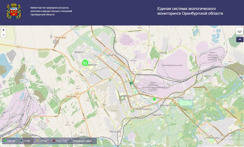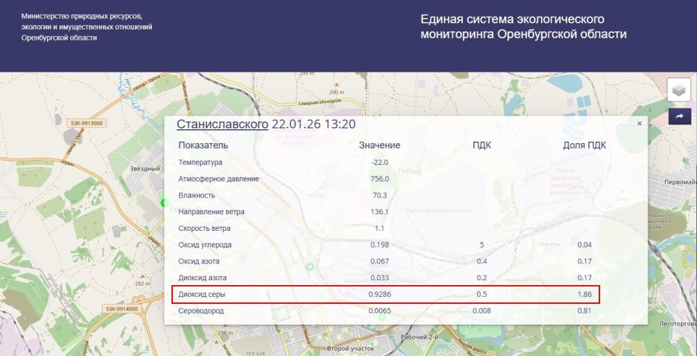В центре Орска фиксируется превышение диоксида серы в воздухе почти в 2 раза