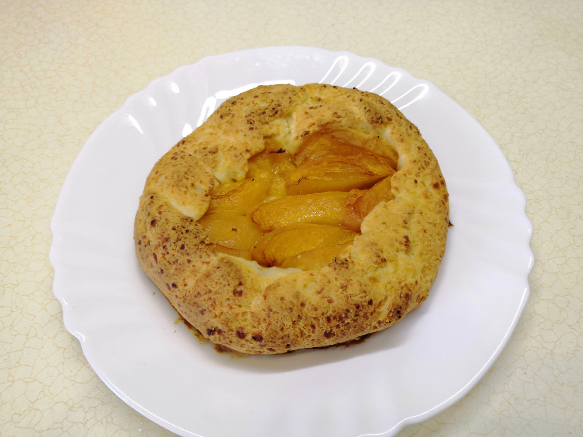 В центр уложить нарезанные абрикосы. Можно предварительно присыпать дно кукурузным крахмалом для впитывания сока. Поднять края теста, формируя галету. Даже если тесто рвется, не стоит переживать - влажными руками легко исправить форму.