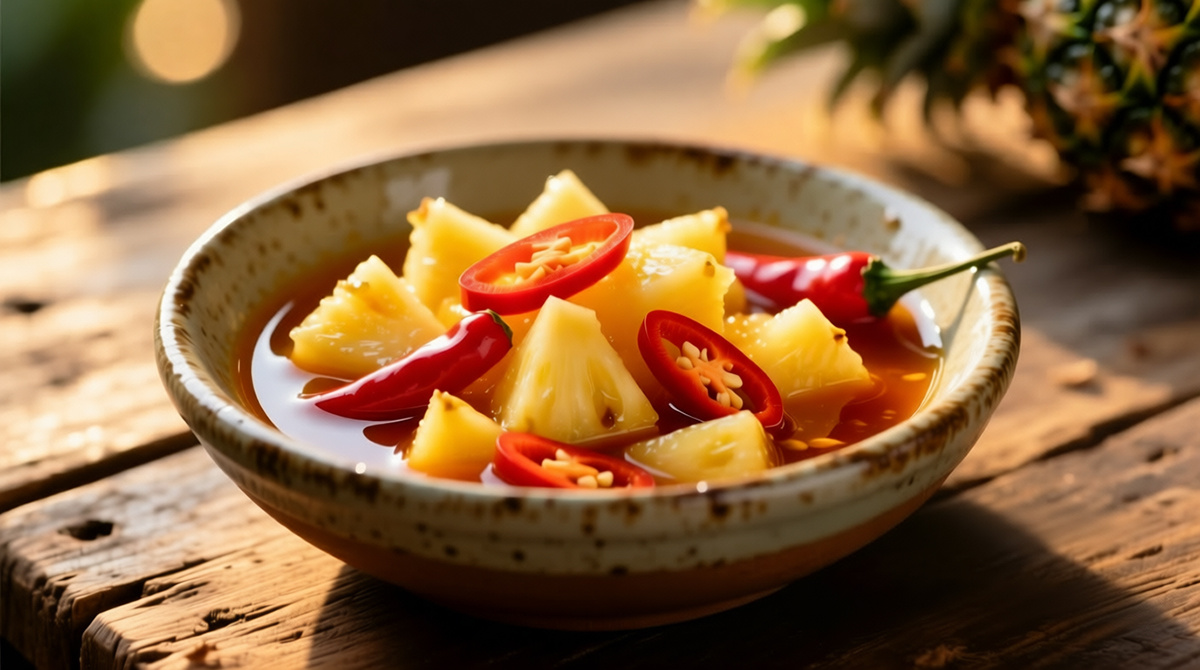 Этот маринад — гармония противоположностей. Сочная сладость ананаса сочетает в себе остроту чили, создавая многослойный вкусовой профиль. Но основное его достоинство заключается не только во вкусовых качествах: ананас содержит фермент бромелайн, который помогает делать мясо нежным и сочным, расщепляя его волокна.