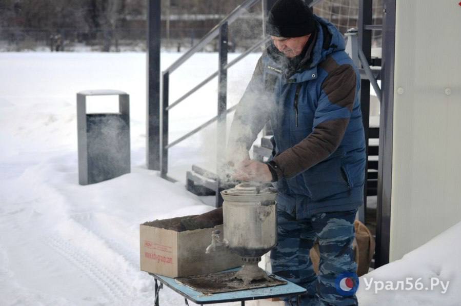 В обновленном совсем недавно спорткомплексе можно было погреться. А чай прямо из самовара наливали рядом с ледовой коробкой.