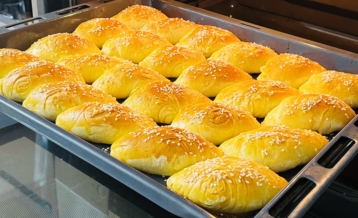 Потому формируете тесто в два шарика, раскатываете каждый до нужной толщины и смазываете маслом. Затем сворачиваете в рулет и снова делите на порции, какие получаются в итоге 24 заготовки с начинкой. Их раскладываете на противень, смазываете желтком и посыпаете кунжутом — простой штрих, который добавляет золотистую корочку и дополнительный аромат.