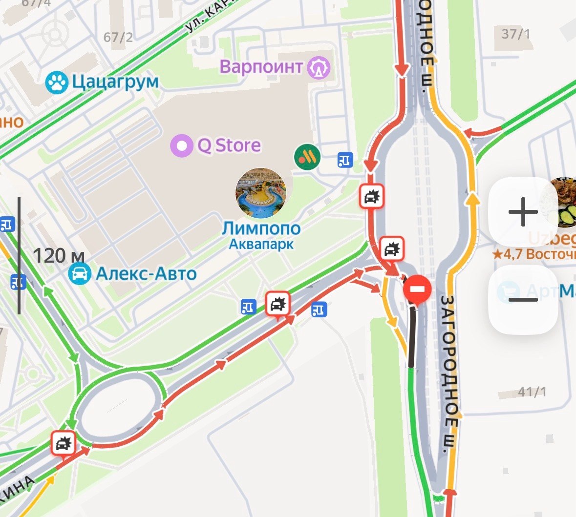 По данным Яндекс-карт, на улице Гаранькина у кольца произошло два ДТП. На самом кольце также два столкновения.