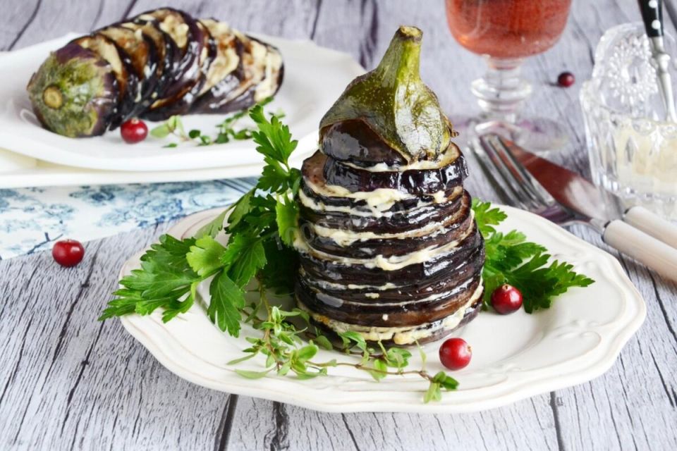 Теперь осталось лишь собрать блюдо: каждый кусочек баклажана смажьте соусом и выложите на сервировочное блюдо в исходной последовательности или в произвольном порядке. Жареные баклажаны станут великолепной закуской или основным блюдом на вашем столе!