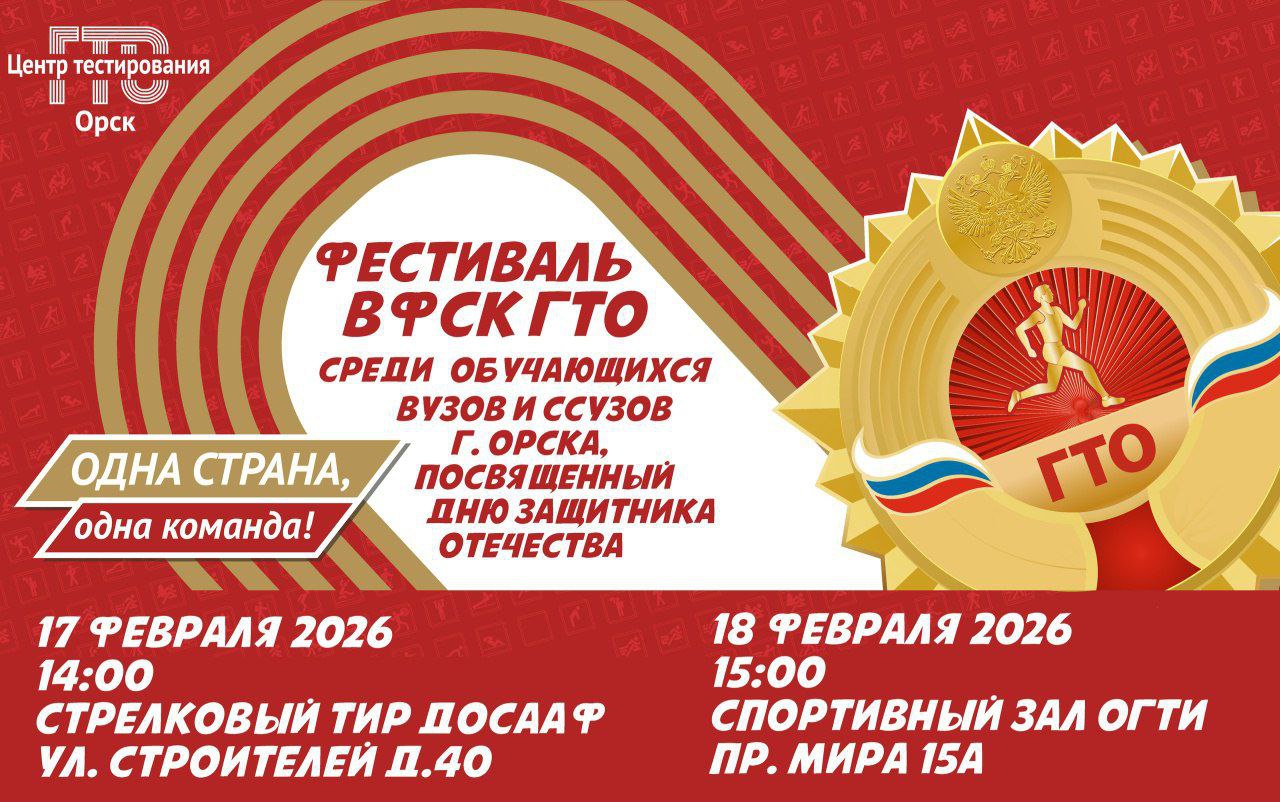 Центр тестирования ГТО Орска приглашает юношей на традиционный зимний Фестиваль ГТО - 2026, посвященный Дню защитника Отечества.