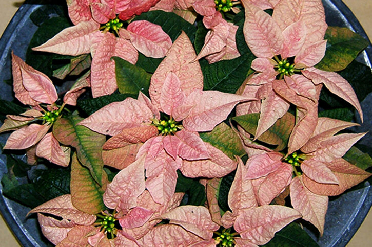Грунт и температура: Пуансеттия предпочитает немного кислую почву (pH 6-6.5) с добавлением верхового торфа. Оптимальная температура не выше 20 C и не ниже 17 C в период цветения.