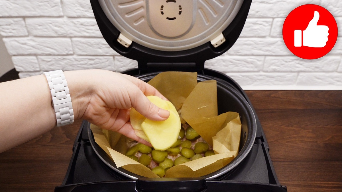 В мультиварку уложите бумагу для выпечки, чтобы избежать прилипаний. Сначала выложите курицу, затем поместите слой нарезанных маринованных огурцов. Следующим слоем станет нарезанный картофель, который также можно слегка приправить. Затем добавьте дольки помидоров, полейте оставшимся майонезом и посыпьте натертым сыром. Заключительный этап — установка режима «Выпечка» или «Мультиповар» на 130°C на 60 минут.