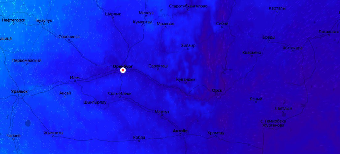 Так сегодня выглядит распределение температуры воздуха на территории Оренбургской области по данным сервиса Яндекс