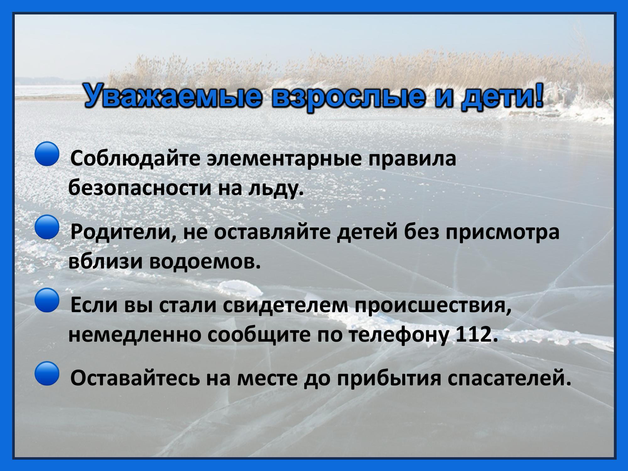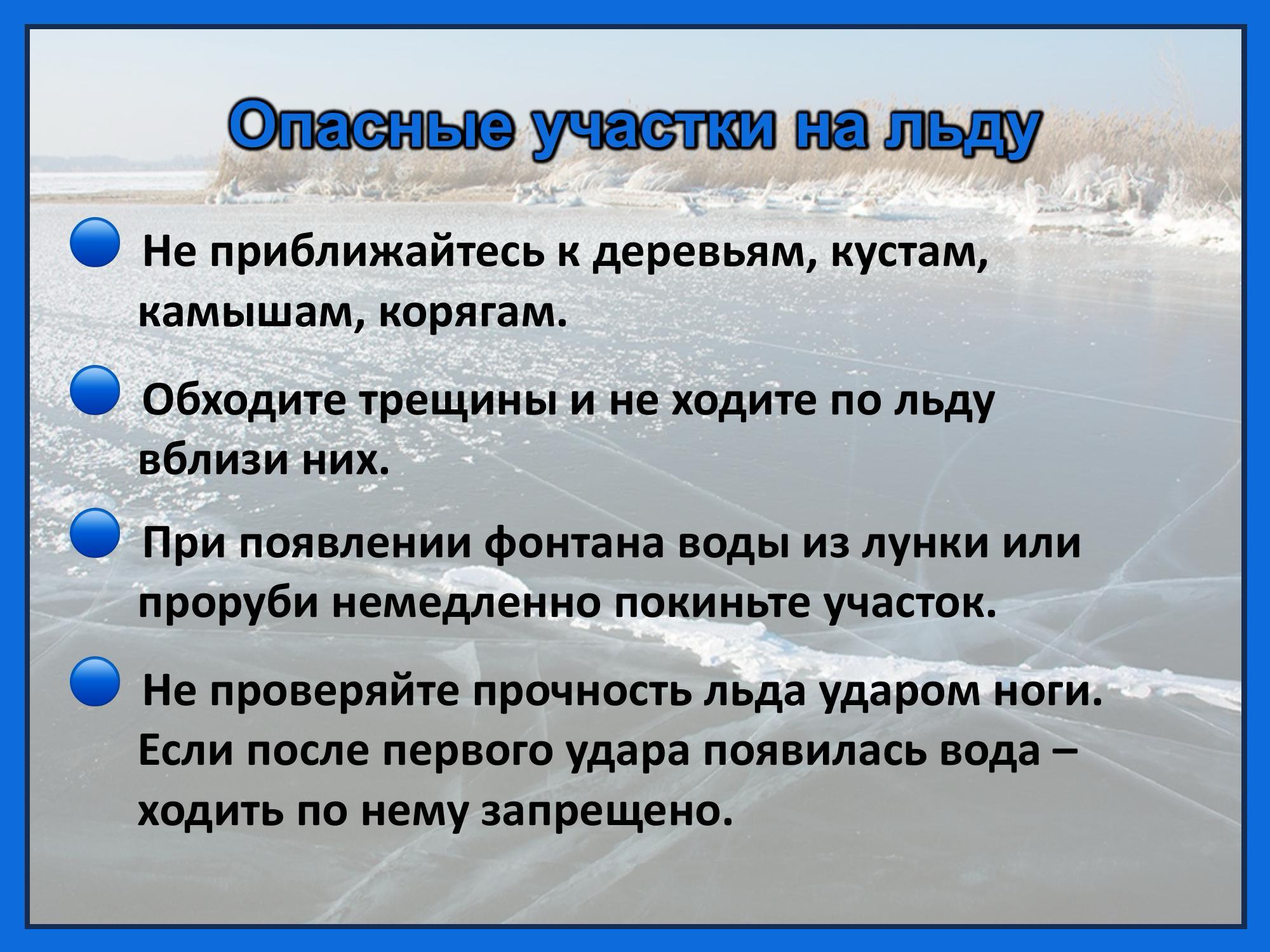Вода может подмыть и разрушить лед изнутри, по берегам могут появиться скрытые снегом промоины, под напором прибывающей воды лед может треснуть и оторваться. Выходить на лед крайне опасно для жизни.