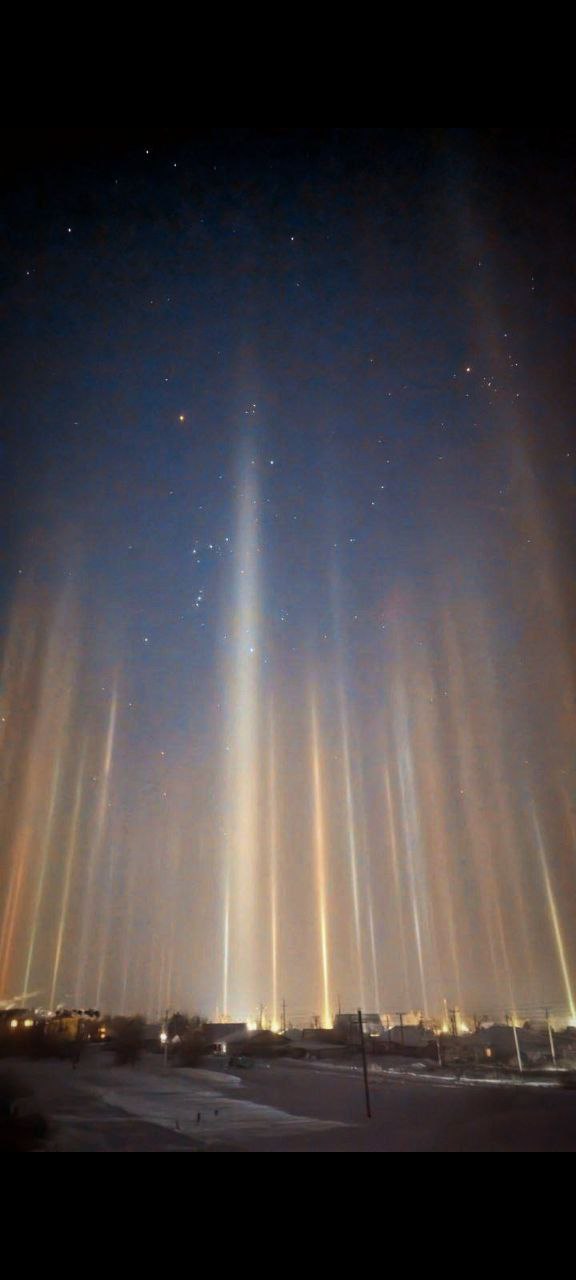Световые столбы, которые заметили жители Оренбургской области — это красивое оптическое явление, которое возникает зимой при определенных погодных условиях. Главная причина — игра света на ледяных кристаллах.