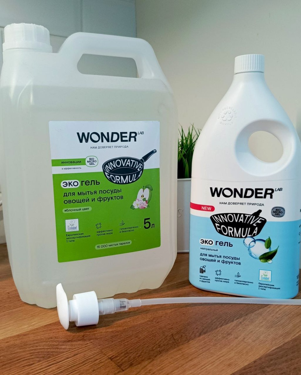 Экотренд продолжает набирать популярность, и продукция компании Wonder Lab не исключение. В ассортимент входят эко-моющие средства для мытья посуды, овощей и фруктов, предлагаемые в различных ароматах, таких как нейтральный, фруктово-сливочный, яблоневый цвет и жасмин. Все они быстро смываются водой, что делает процесс мытья более комфортным.